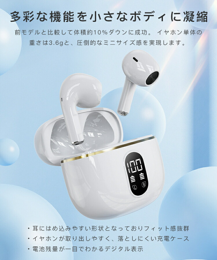 ワイヤレスイヤホン Bluetooth5.3 イヤホン iphone15 ブルートゥース 軽量 小型 片耳 両耳 残量表示 ios android 防水 高音質 最新型 ノイズキャンセリング