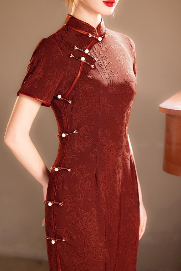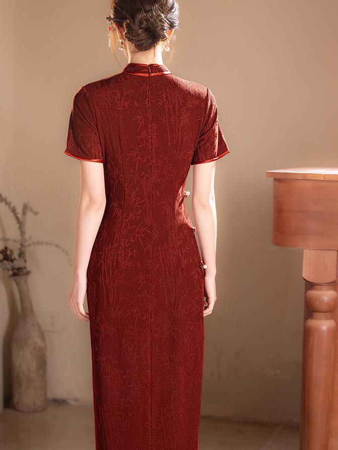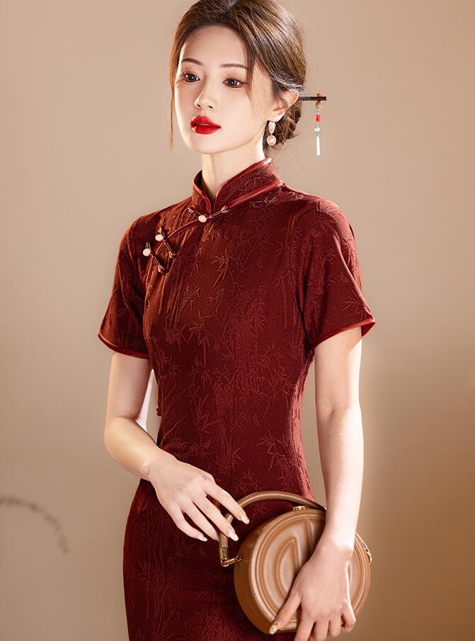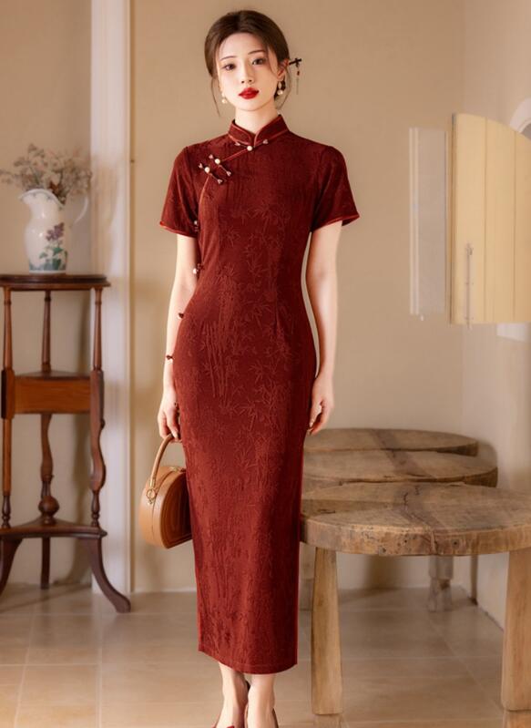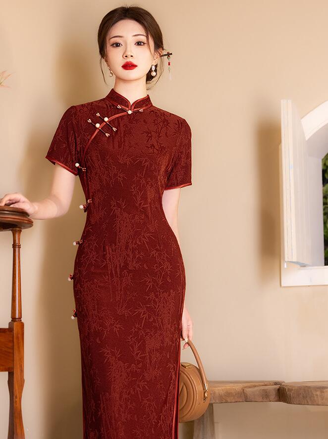 改良ドレス 中華風 チャイナドレス半袖 ドレス 続々登場 S M L XL 2XL 3XL ワインレッド 黒