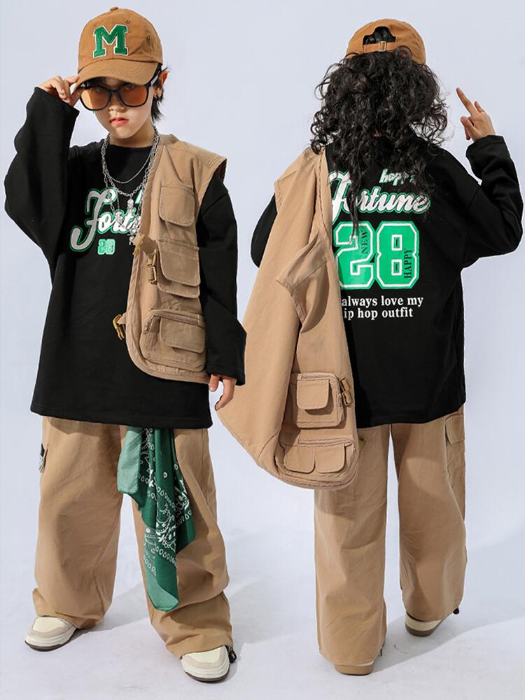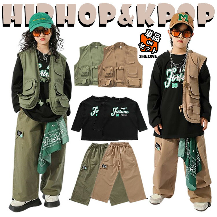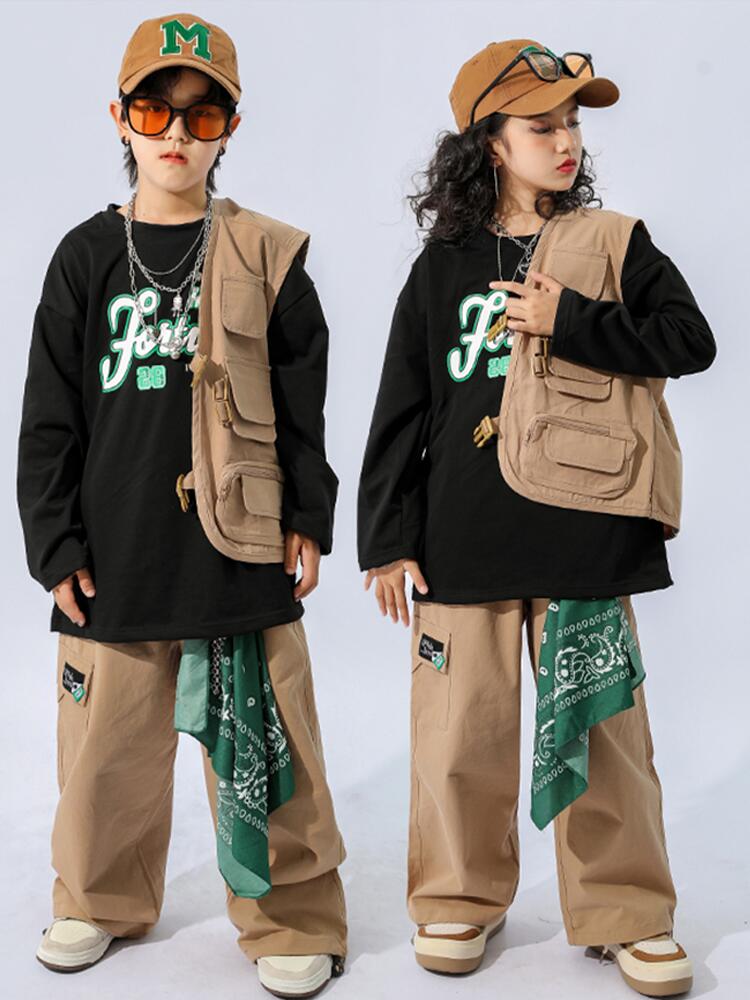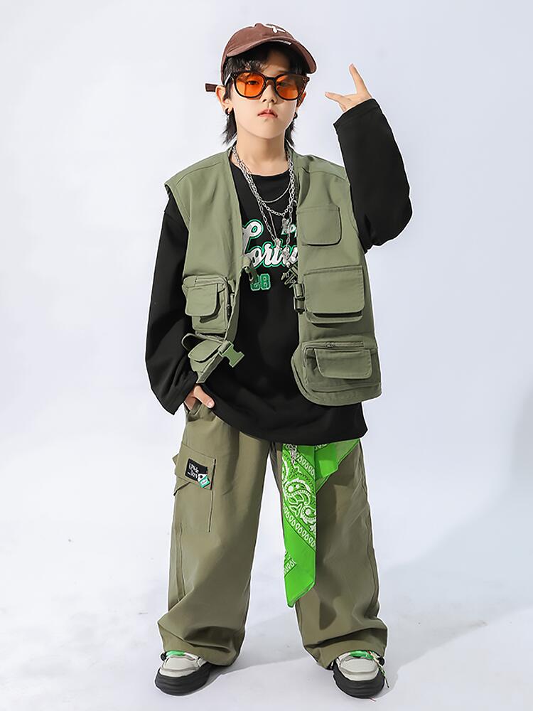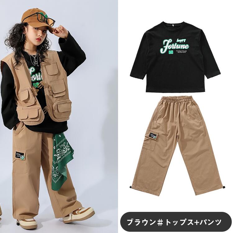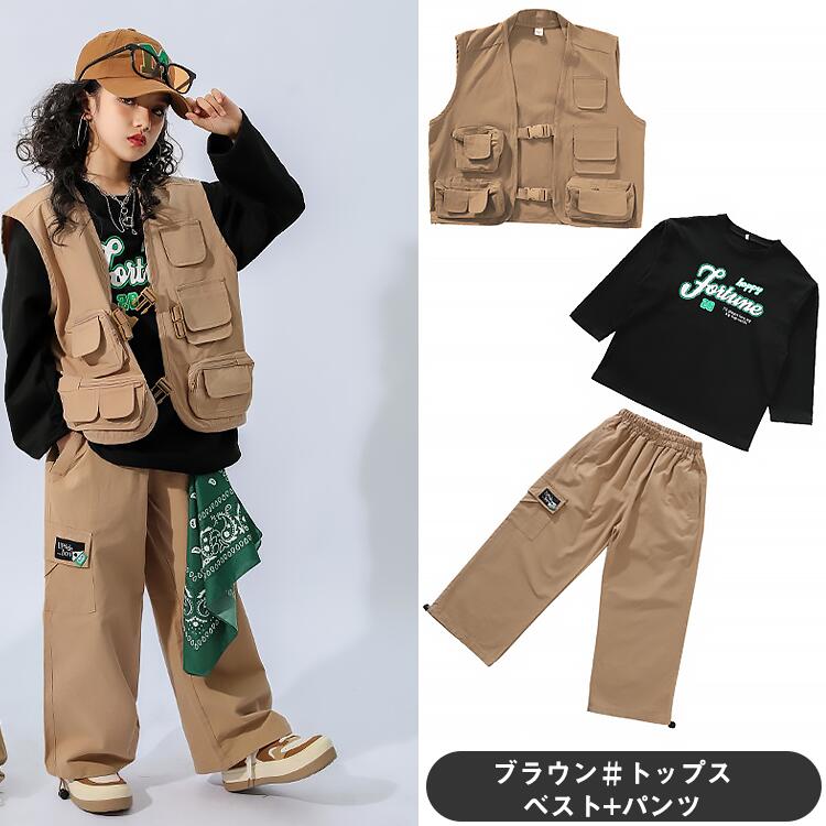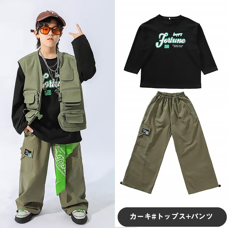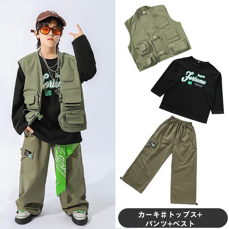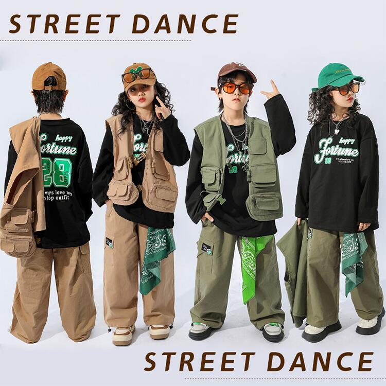 カーキ ブラウン キッズ ダンス衣装 キッズ ベビー マタニティ 新作 カーキグリーン ブラウン トップス+パンツ ベスト+パンツ ベスト+パンツ+トップス パンツ ベスト