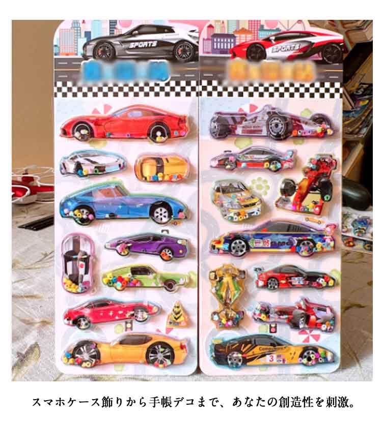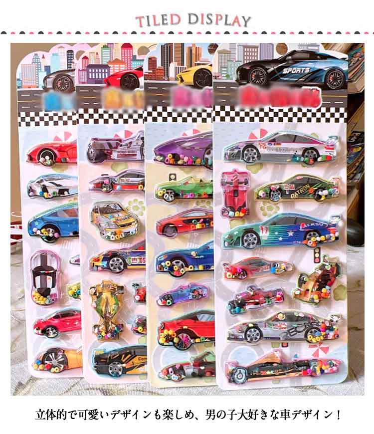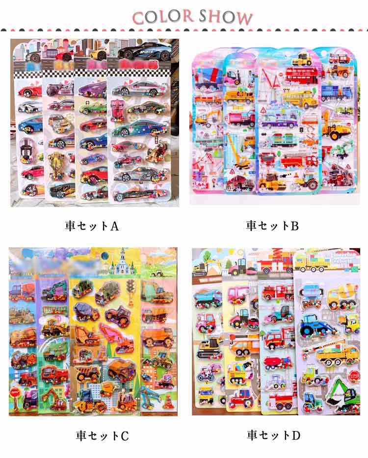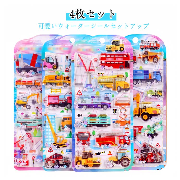 4枚セット ウォーターシール ぷっくり 日用品雑貨 文房具 手芸 新作 車セットA 車セットB 車セットC 車セットD