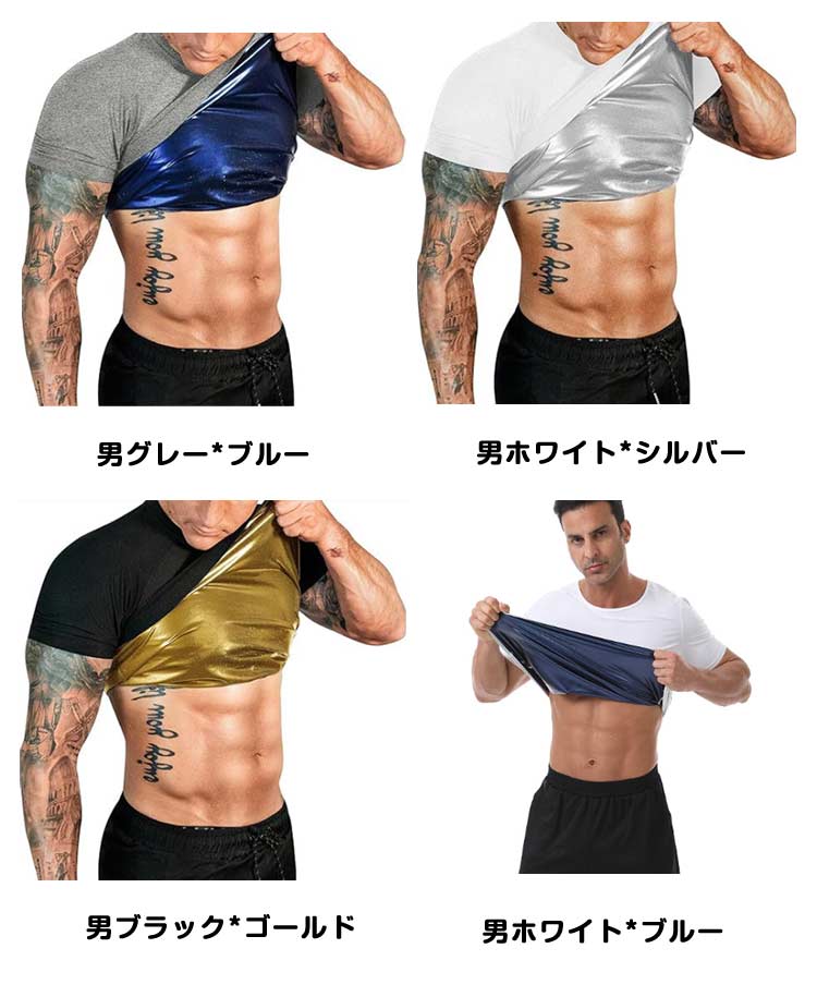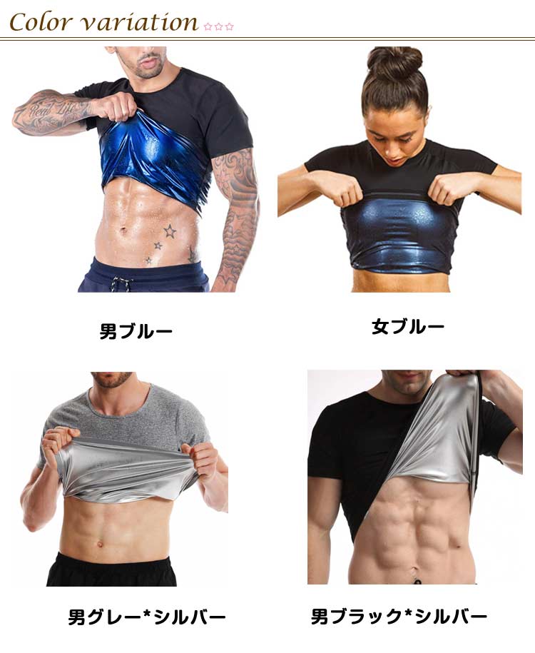 シャツ 発汗 サウナ Tシャツ 加圧 スポーツ アウトドア 新登場! 男ブルー 女ブルー 男グレー*シルバー 男ブラック*シルバー 男グレー*ブルー 男ホワイト*シルバー 男ブラック*ゴールド 男ホワイト*ブルー S M L XL XXL 3XL 4XL