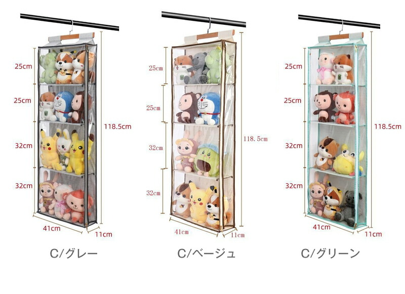 ぬいぐるみ 鞄収納 収納 ぬいぐるみウ A B C ライトグレー ダークグレー ベージュ グレー グリーン