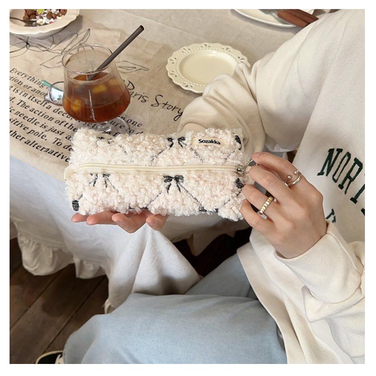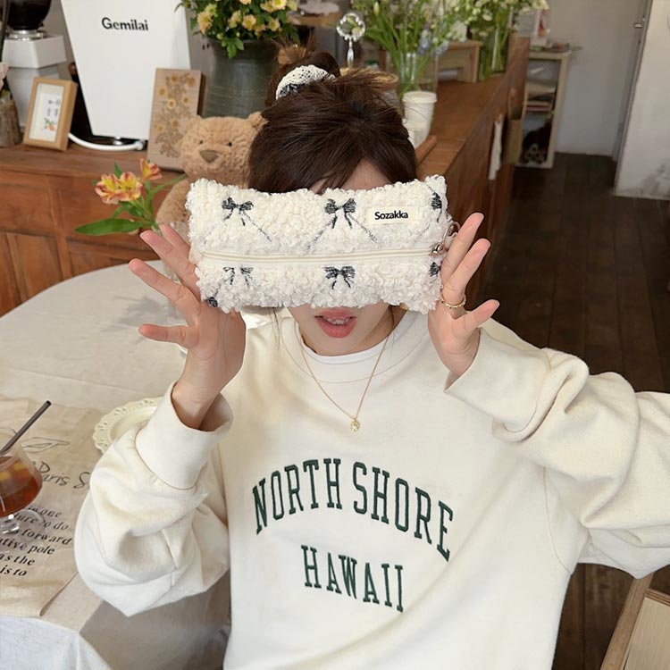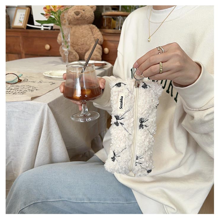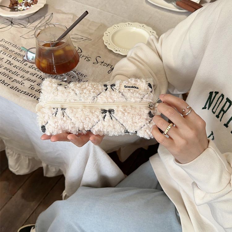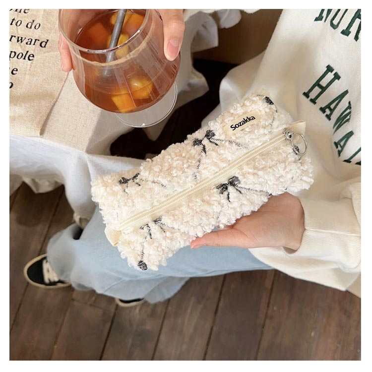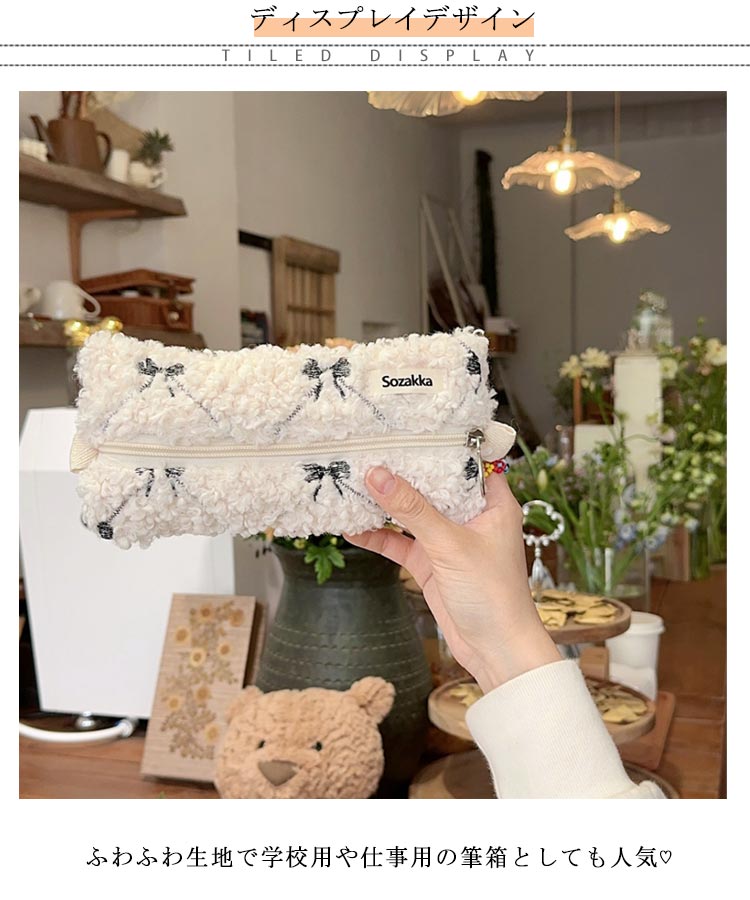 筆入れ リボン刺繍 高校生 もこもこ 文房具 事務用品 筆記具 ペンケース 通販