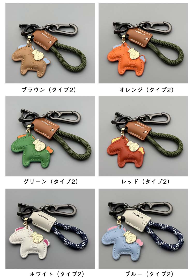 馬キーホルダー 2026年 干支 午年 バッグ 小物 ブランド雑貨 通販 ブラウン(タイプ1) グリーン(タイプ1) オレンジ(タイプ1) レッド(タイプ1) ピンク(タイプ1) ブルー(タイプ1) ブラック(タイプ2) イエロー黒紐(タイプ2) 桃ピンク(タイプ2) 桜ピンク(タイプ2) パープル(タイプ2) イエロー白紐(タイプ2) ブラウン(タイプ2) オレンジ(タイプ2) グリーン(タイプ2) レッド(タイプ2) ホワイト(タイプ2) ブルー(タイプ2)