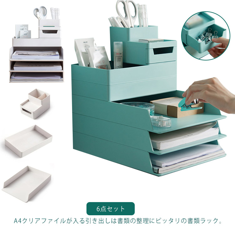 書類ラック 6点セット 多機能 卓上 日用品雑貨 文房具 手芸 新作 グリーン ホワイト