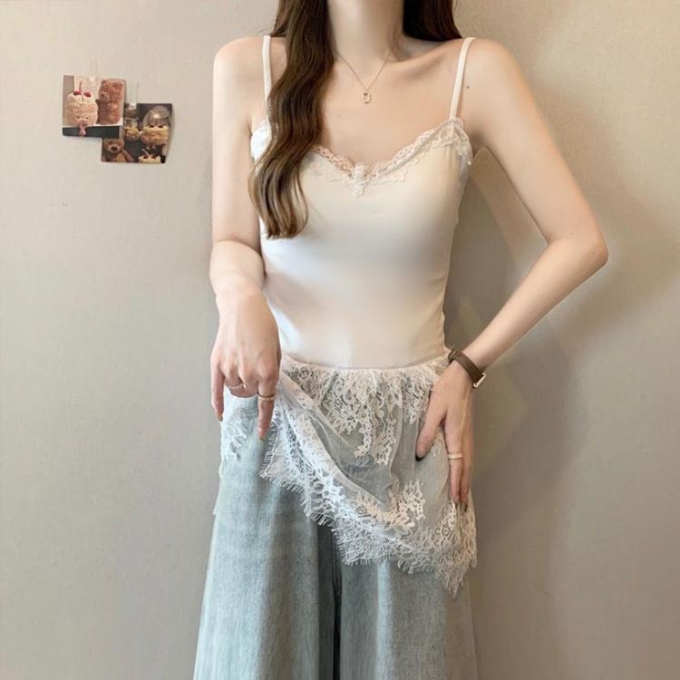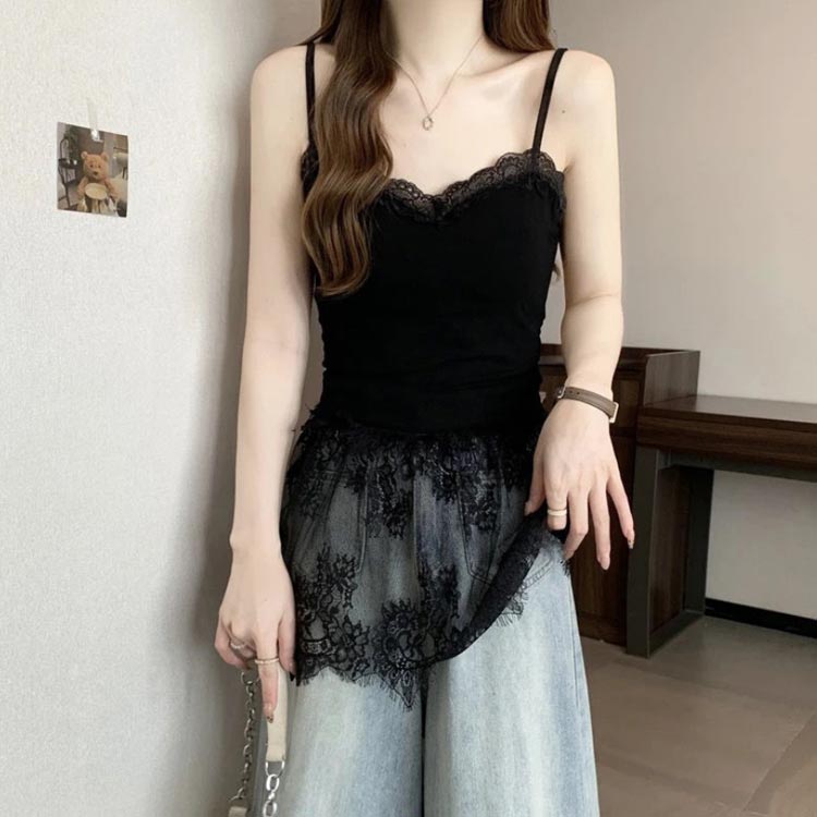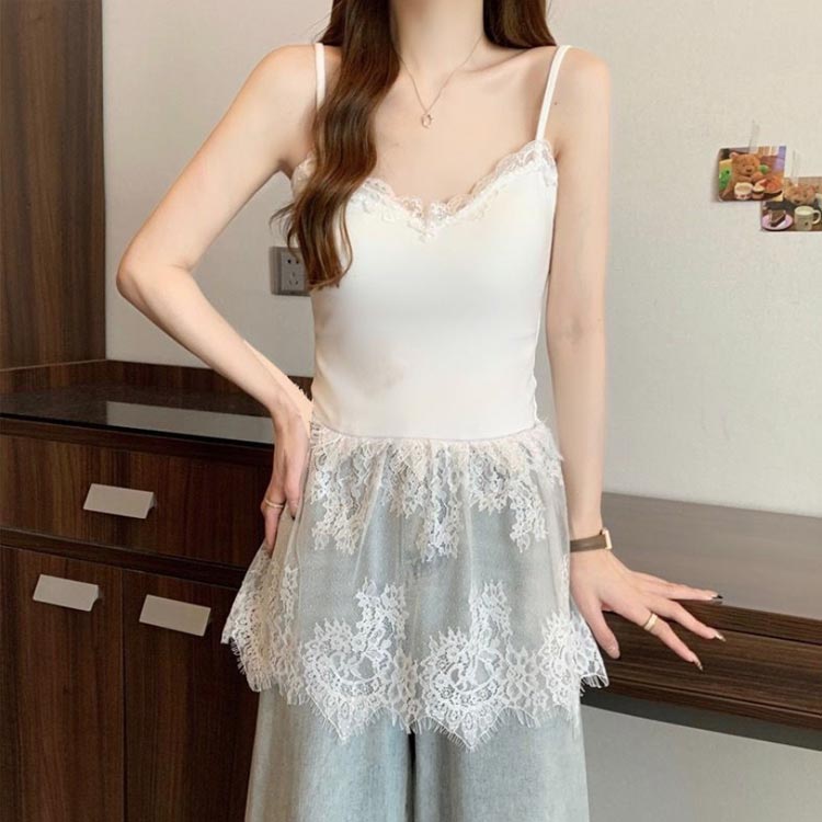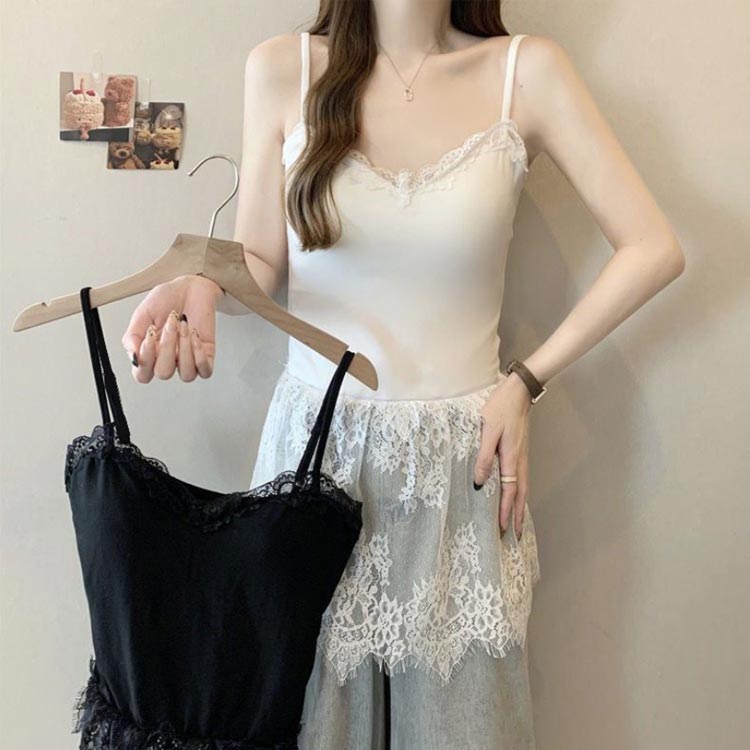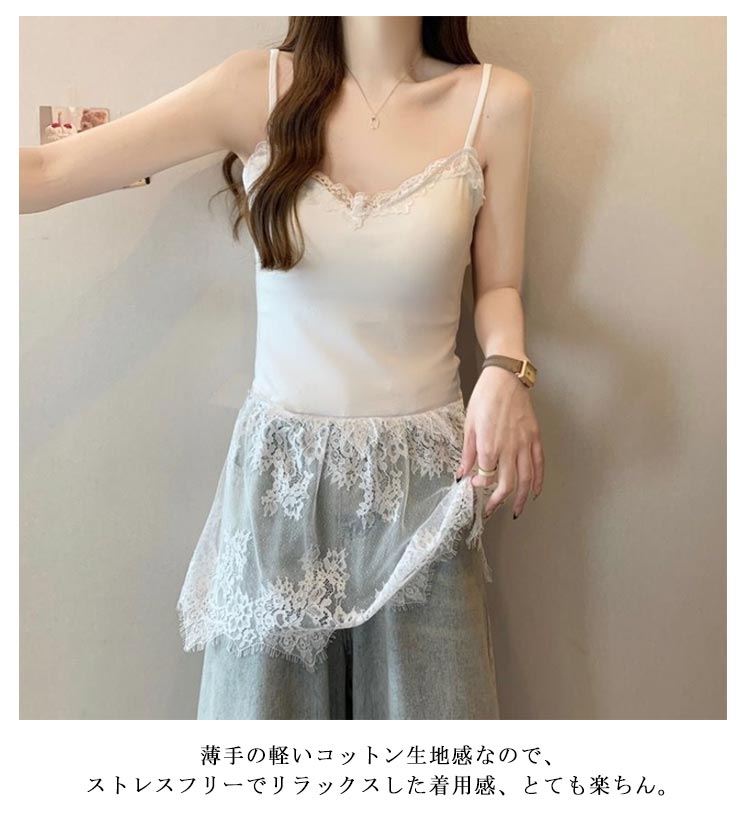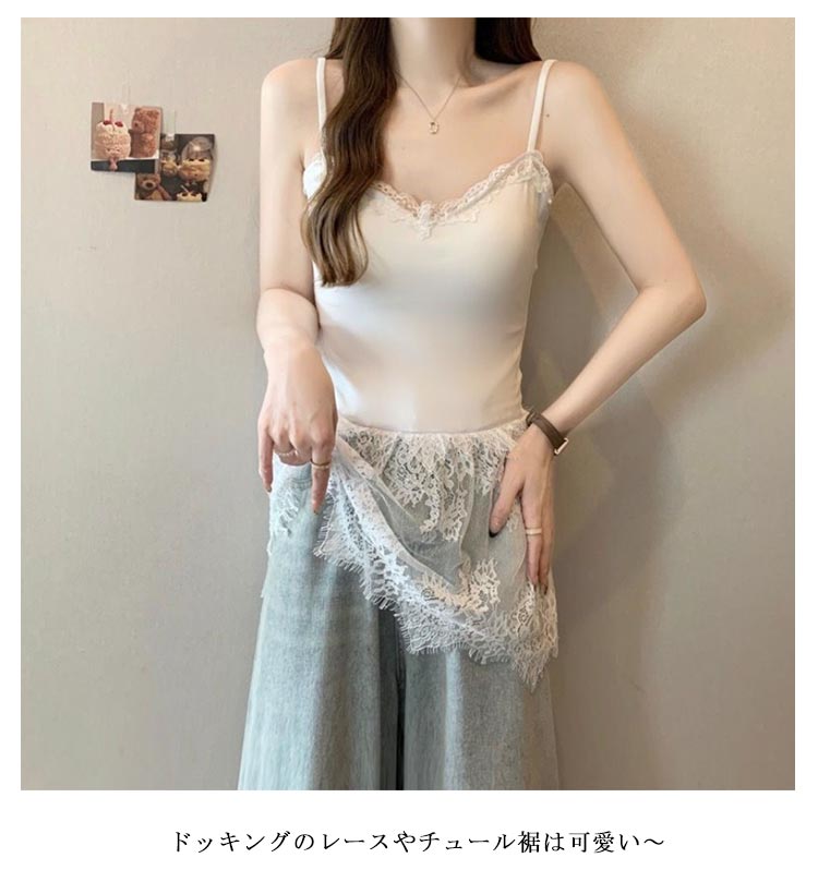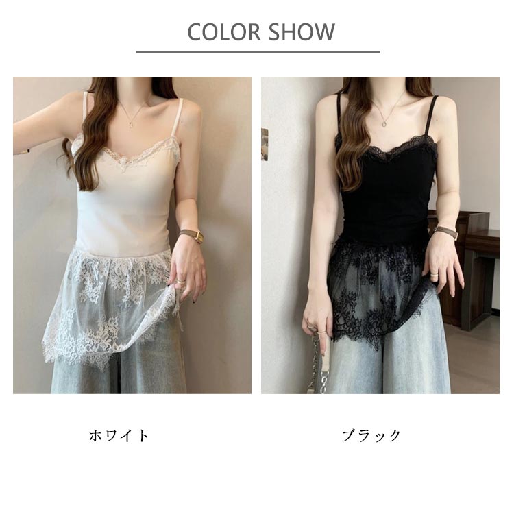 重ね着 レース切り替え キャミソール レディースファッション 特集 ホワイト ブラック M L