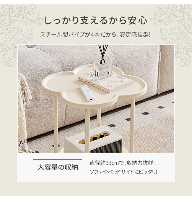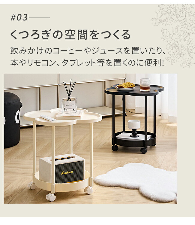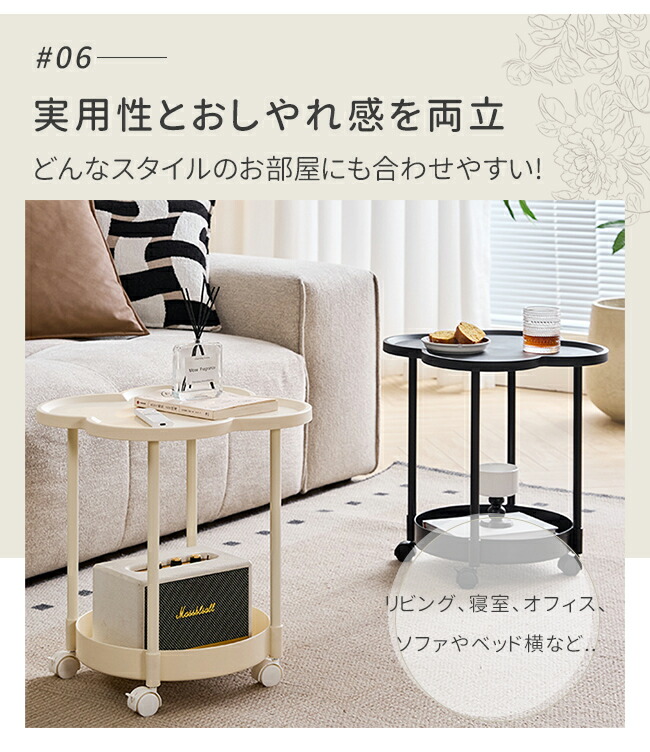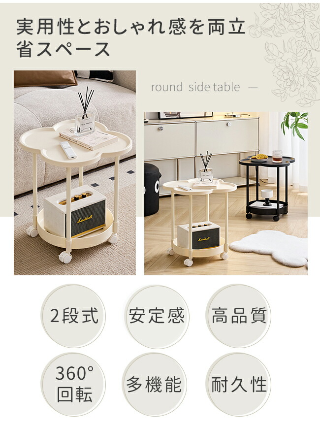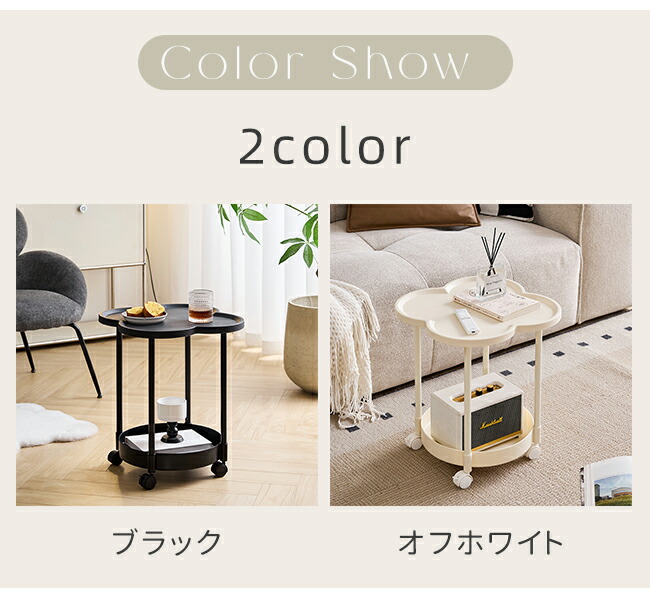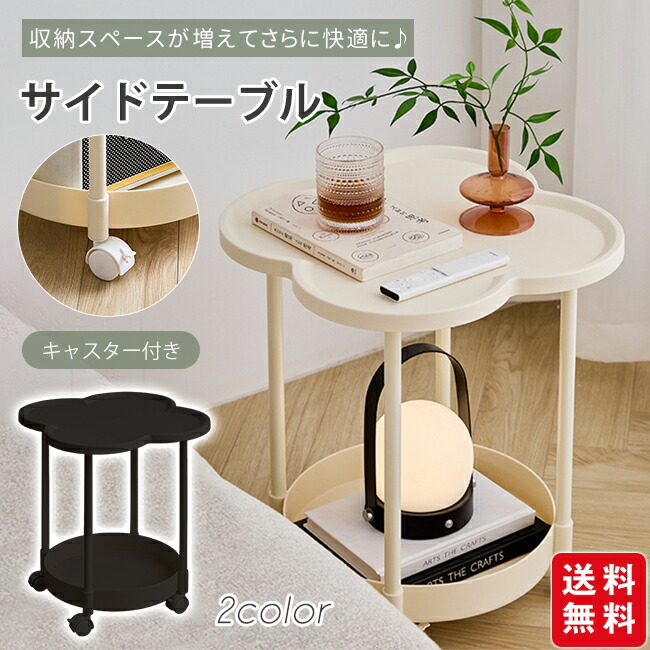 サイドテーブル 2段 多機能 サイドワ ブラック オフホワイト