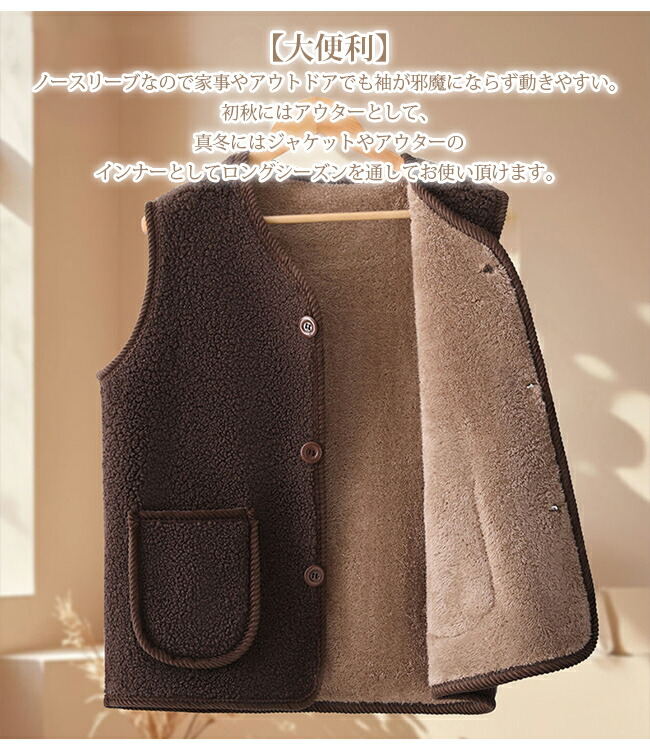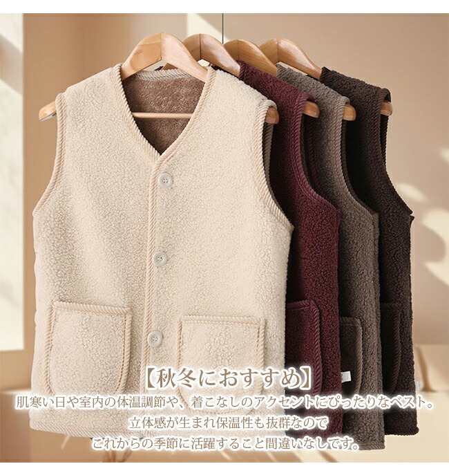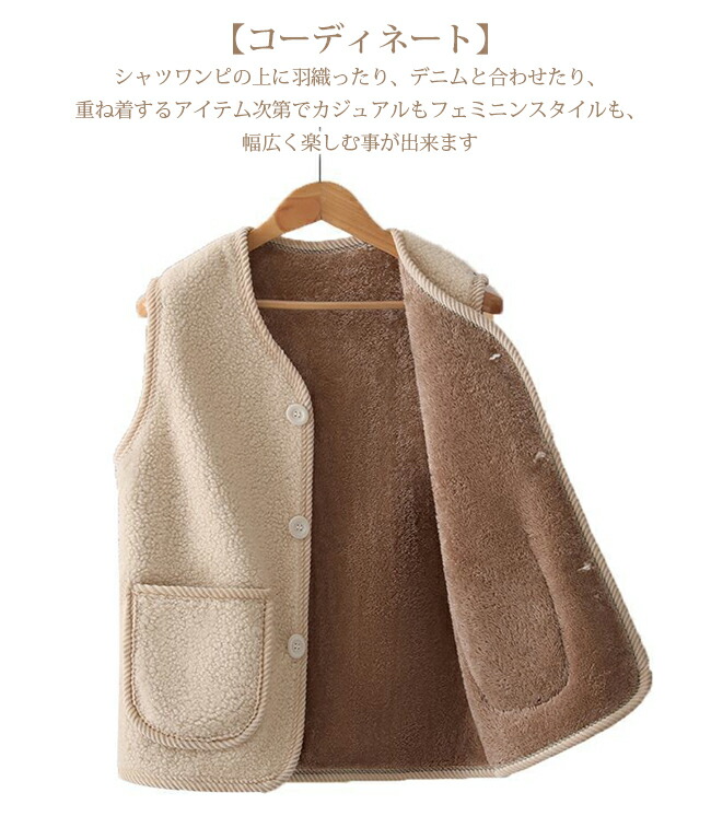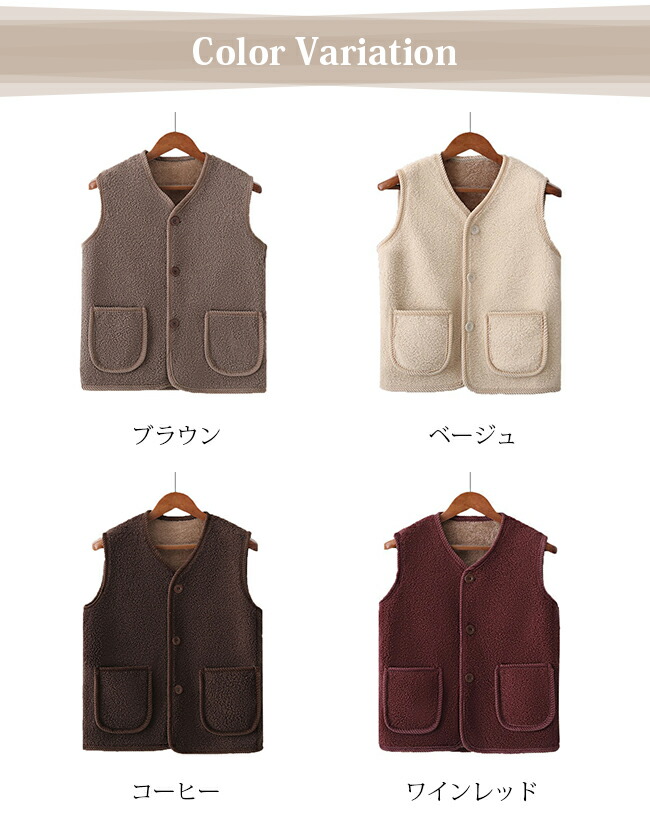 ベスト レディース 秋冬 ボアベスト レディースファッション 豊富 ブラウン ベージュ コーヒー ワイン 2XL(45-55kg) 3XL(55-60kg) 4XL(60-70kg) 5XL(70-80kg)