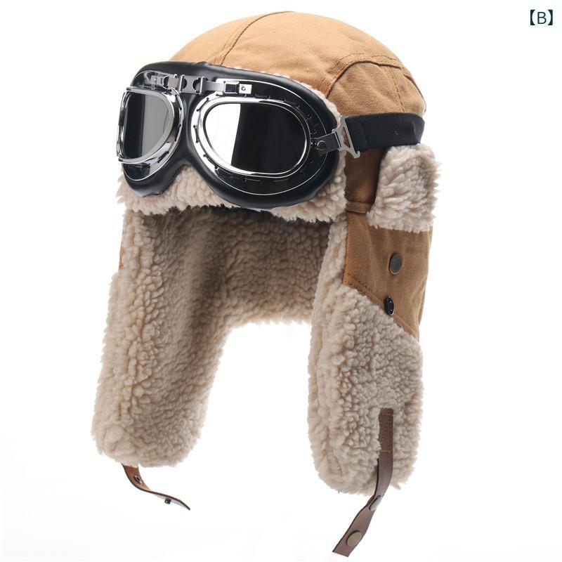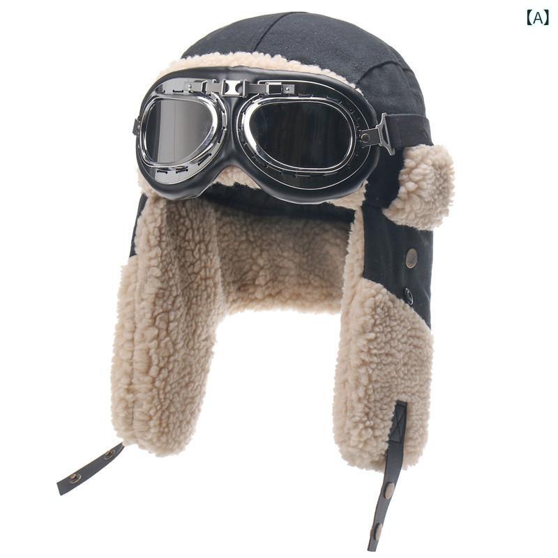 フライトキャップ 男女兼用 ゴーグル付 バッグ 小物 ブランド雑貨 続々登場 A:ブラック+ハーレーゴーグル B:カーキ+ハーレーゴーグル C:ブルー+ハーレーゴーグル D:ブラック 単品帽 E:カーキ 単品帽 F:ブルー 単品帽