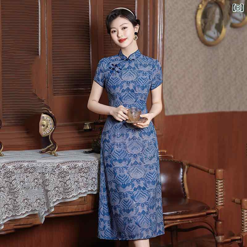 ワンピース レディース 改良チャイナド ドレス 超目玉商品 A:赤紋 B:青紋 M L XL XXL XXXL XXXXL