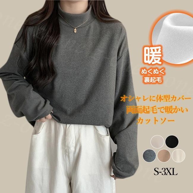 カットソー 長袖 新作 裏起毛 レディ レディースファッション 豊富 ホワイト ブラック グレー ブラウン ベージュ S M L XL 2XL 3XL