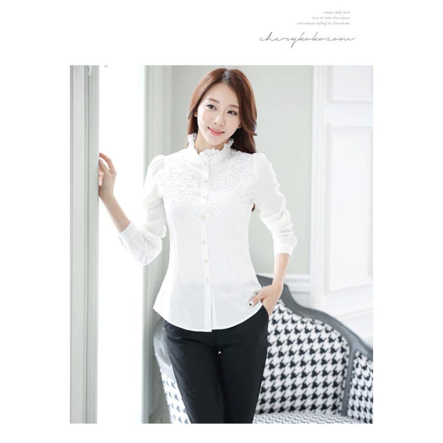 ロングブラウス レディース 長袖 詰襟 レディースファッション 続々登場 M L XL 2XL