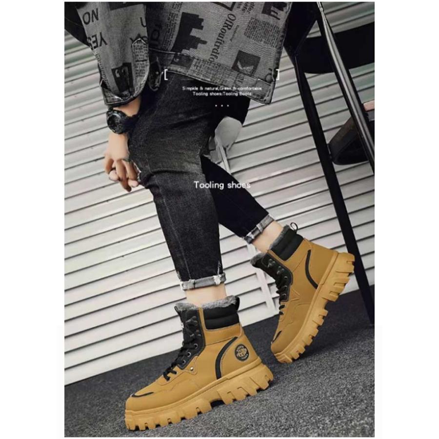 ワークブーツ 冬靴 メンズ 秋冬 裏起 レディースファッション 新登場! グリーン イエロー ブラック 39 40 41 42 43 44