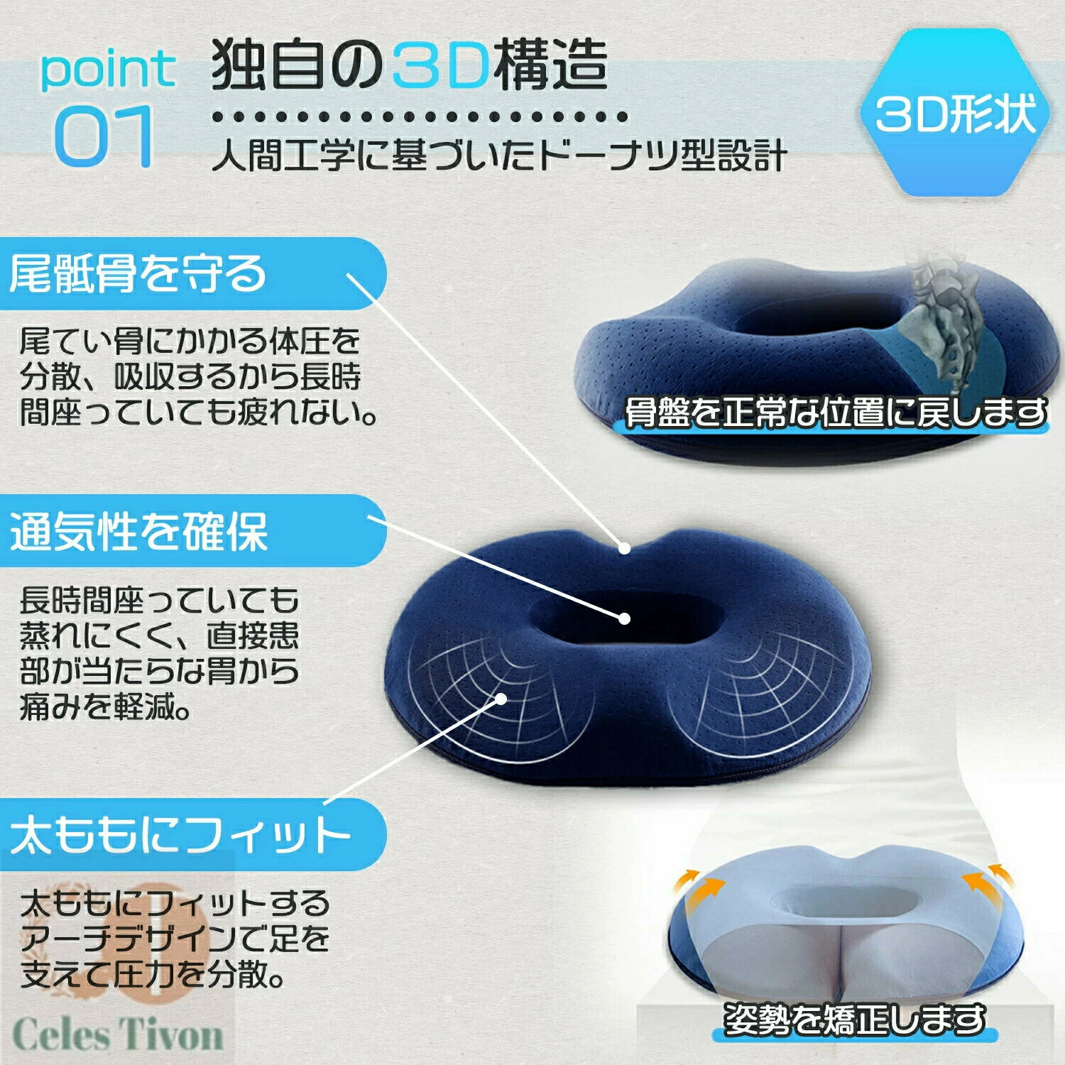 円座クッション 産後 痔 腰痛 ドーナ グレー ブルー ピンク