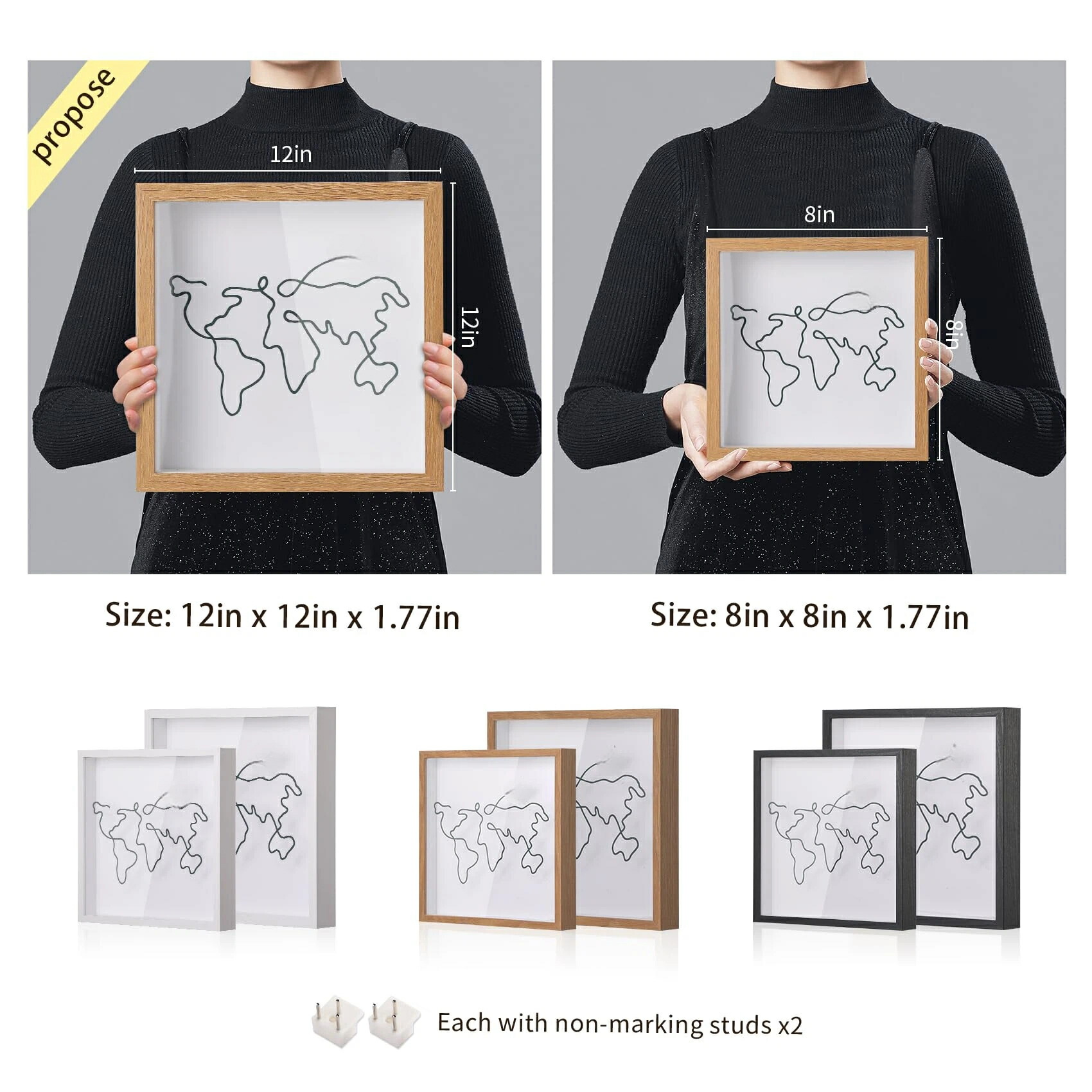 シャドウボックス 思い出用 コンサート Black White Wood Color 8x8 12x12in 8x8in