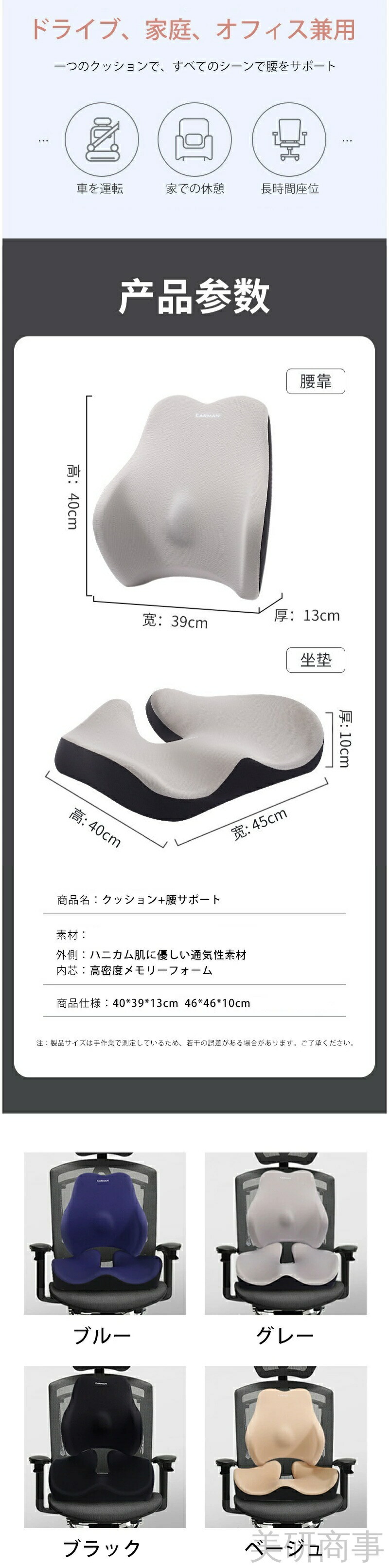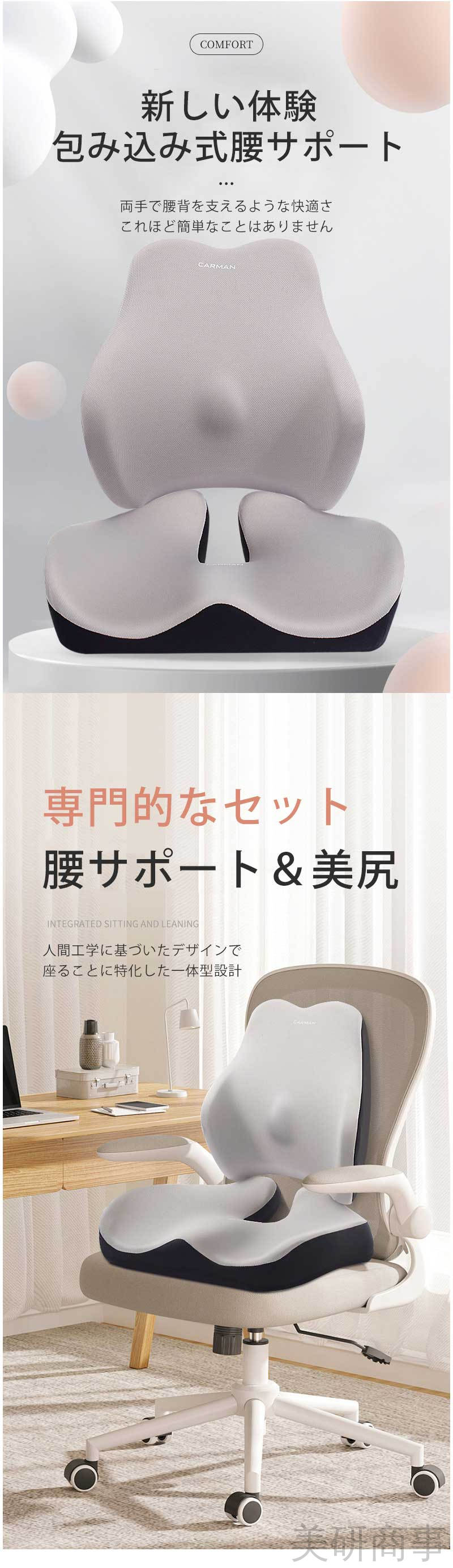 腰痛緩和 骨盤サポート 姿勢矯正クッシ ブルー グレー ブラック ベージュ ネイビー クラレット ブラウン コーヒー 座布団 腰用クッション 腰用クッション+座布団