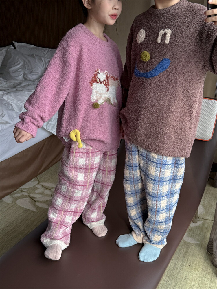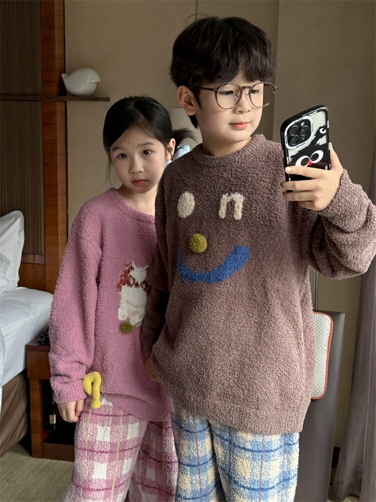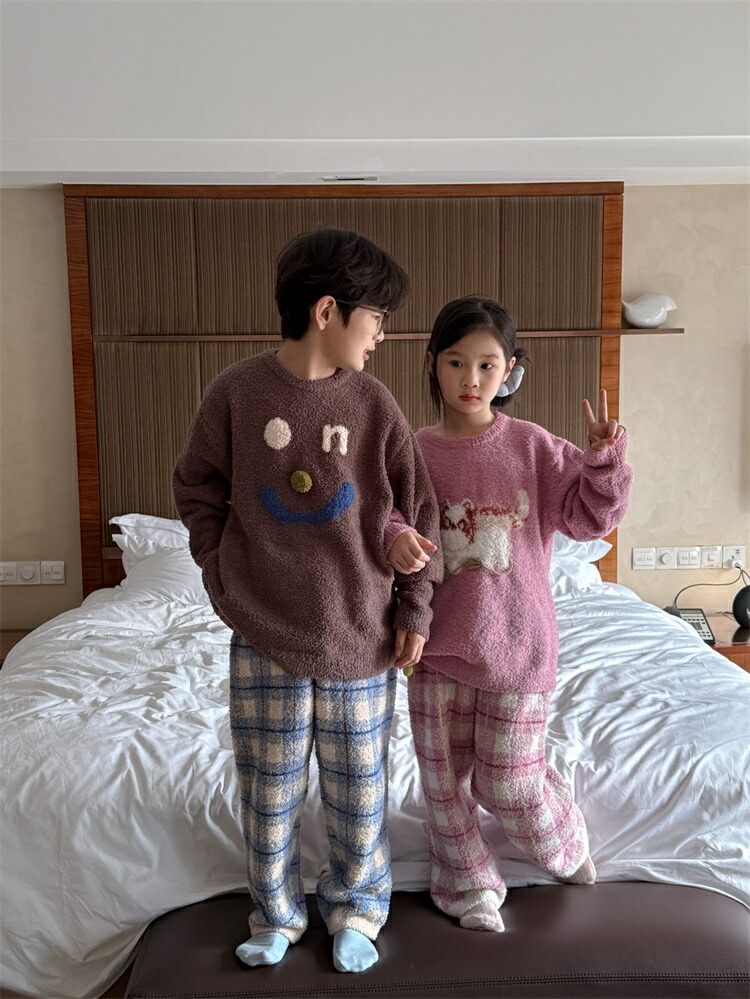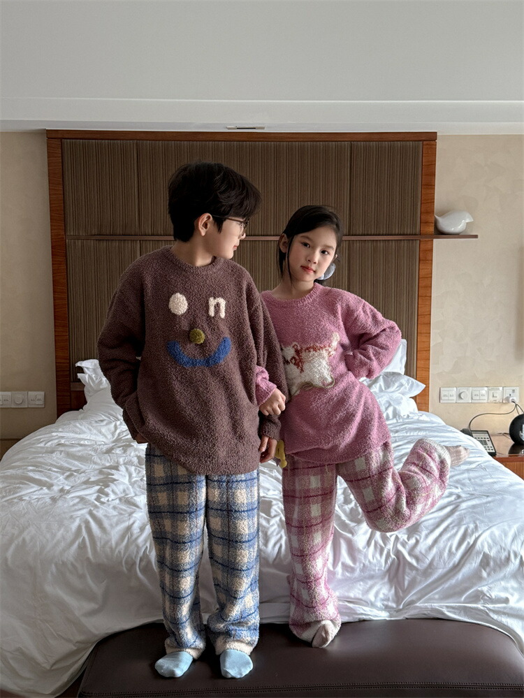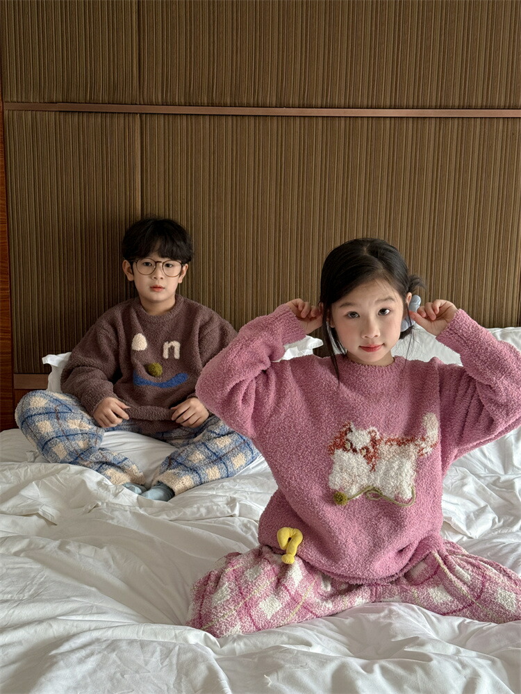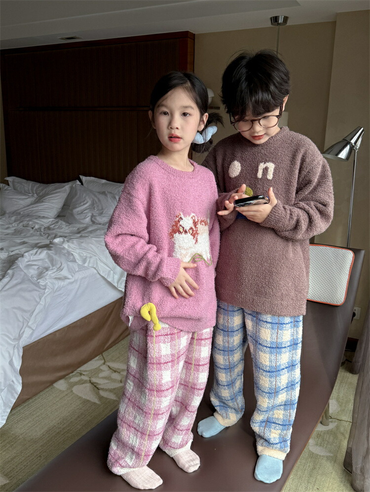 キッズ パジャマ もこもこ 長袖 上下セット 子ども ルームウェア 部屋着 セットアップ 女の子 男の子 秋冬 あったか かわいい 韓国子ども服 チェック柄 アニマル柄 ふわふわ 寝間着 90- 冬用
