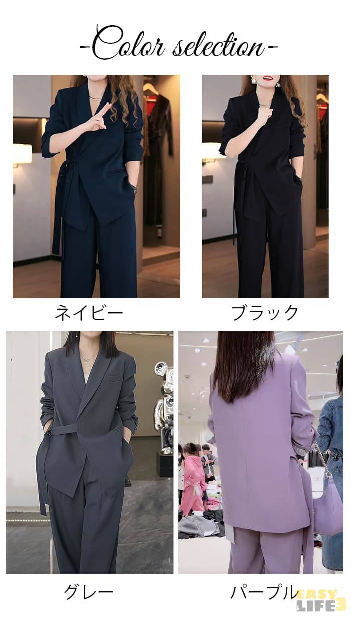 パンツスーツ レディース 卒園式 結婚 レディースファッション 通販 ネイビー ブラック グレー パープル S M L XL 2XL 3XL 4XL 5XL