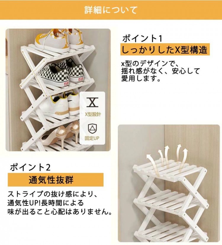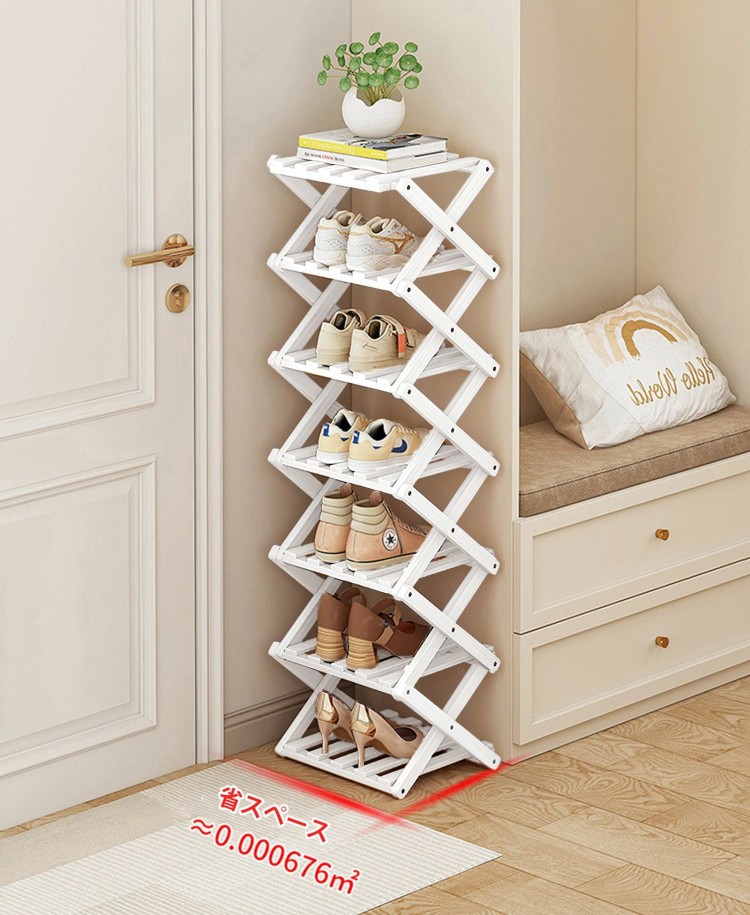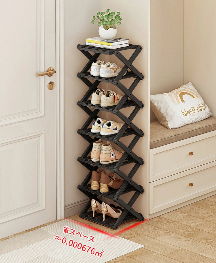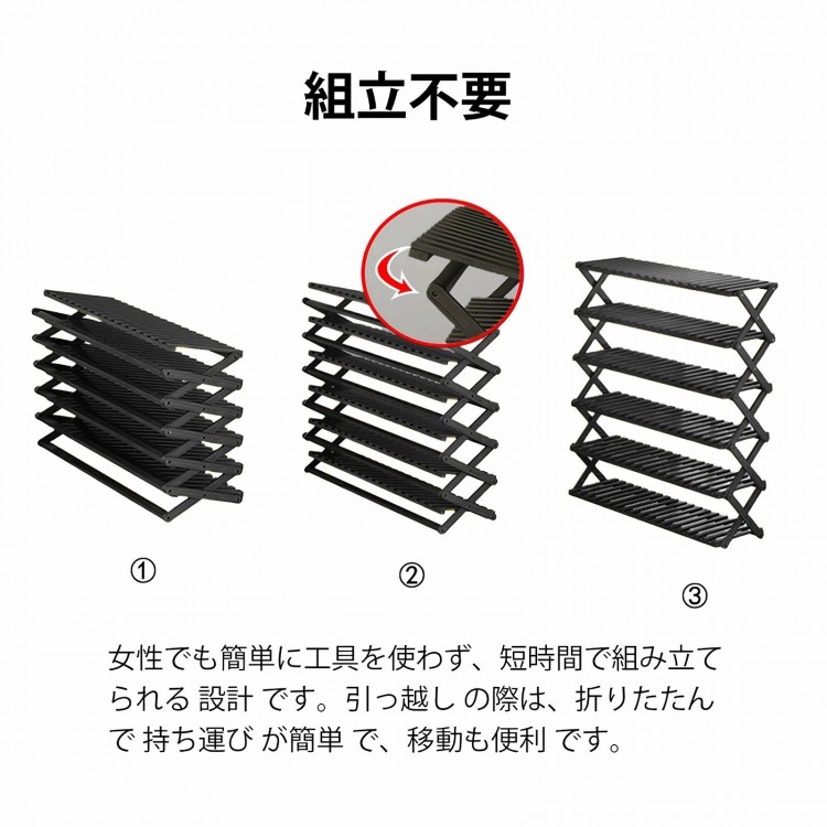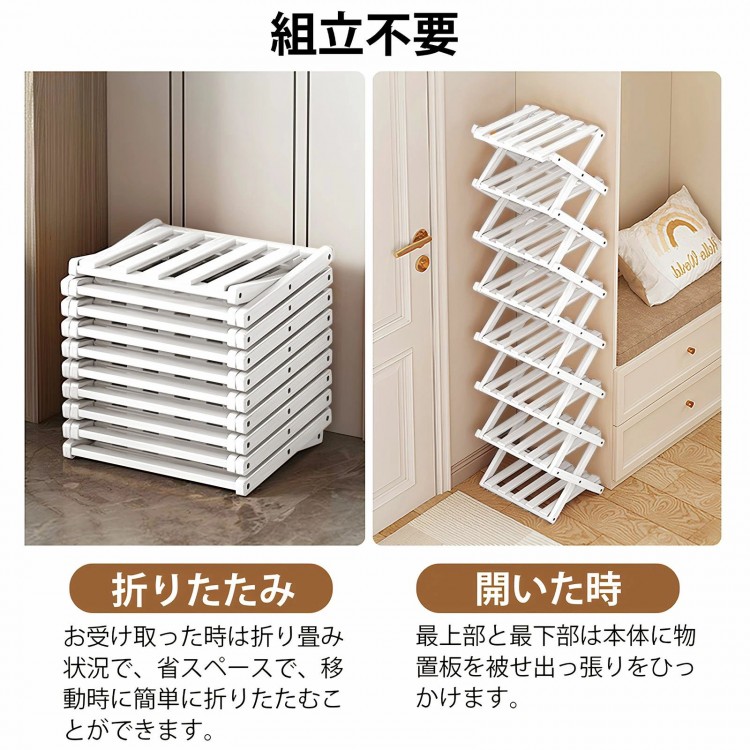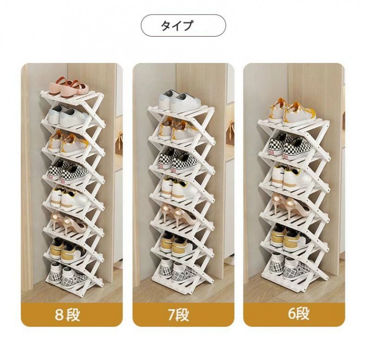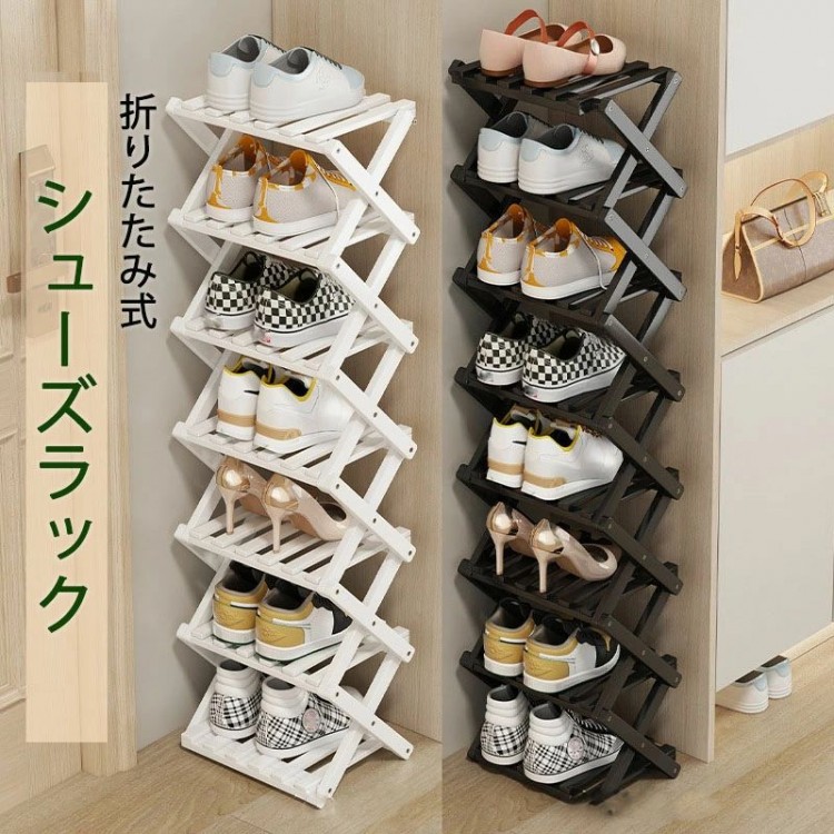 シューズラックスリム 折り畳み式 組立 ブラック ホワイト 2段 3段 4段 5段 6段 7段 8段