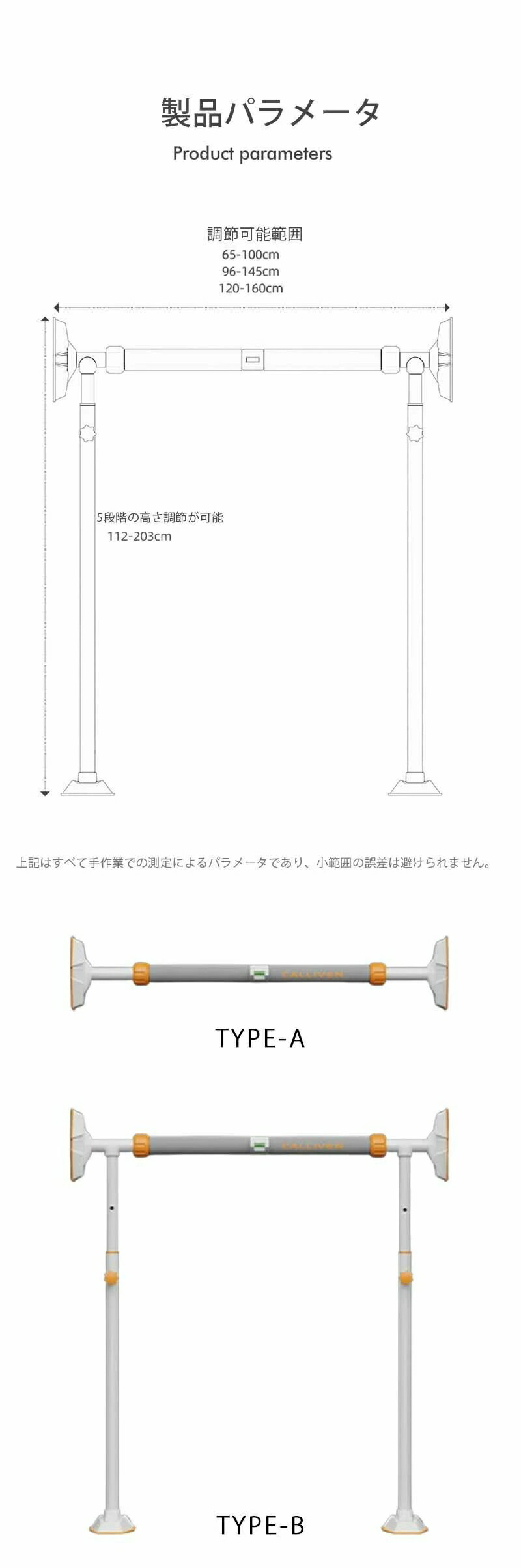 バ チンニング トレーニング器具 筋ト TYPE-A TYPE-B 65-96cm 96-140cm 120-160cm