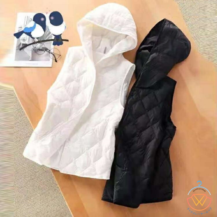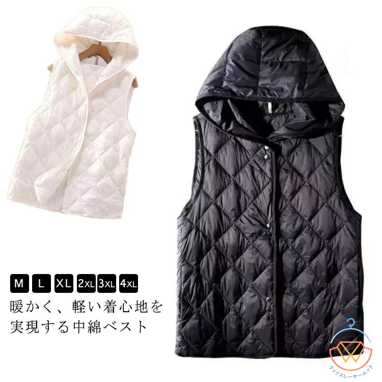 インナーベスト フード付き 中綿ベスト レディースファッション 早い者勝ち ホワイト ブラック M L XL 2XL 3XL 4XL