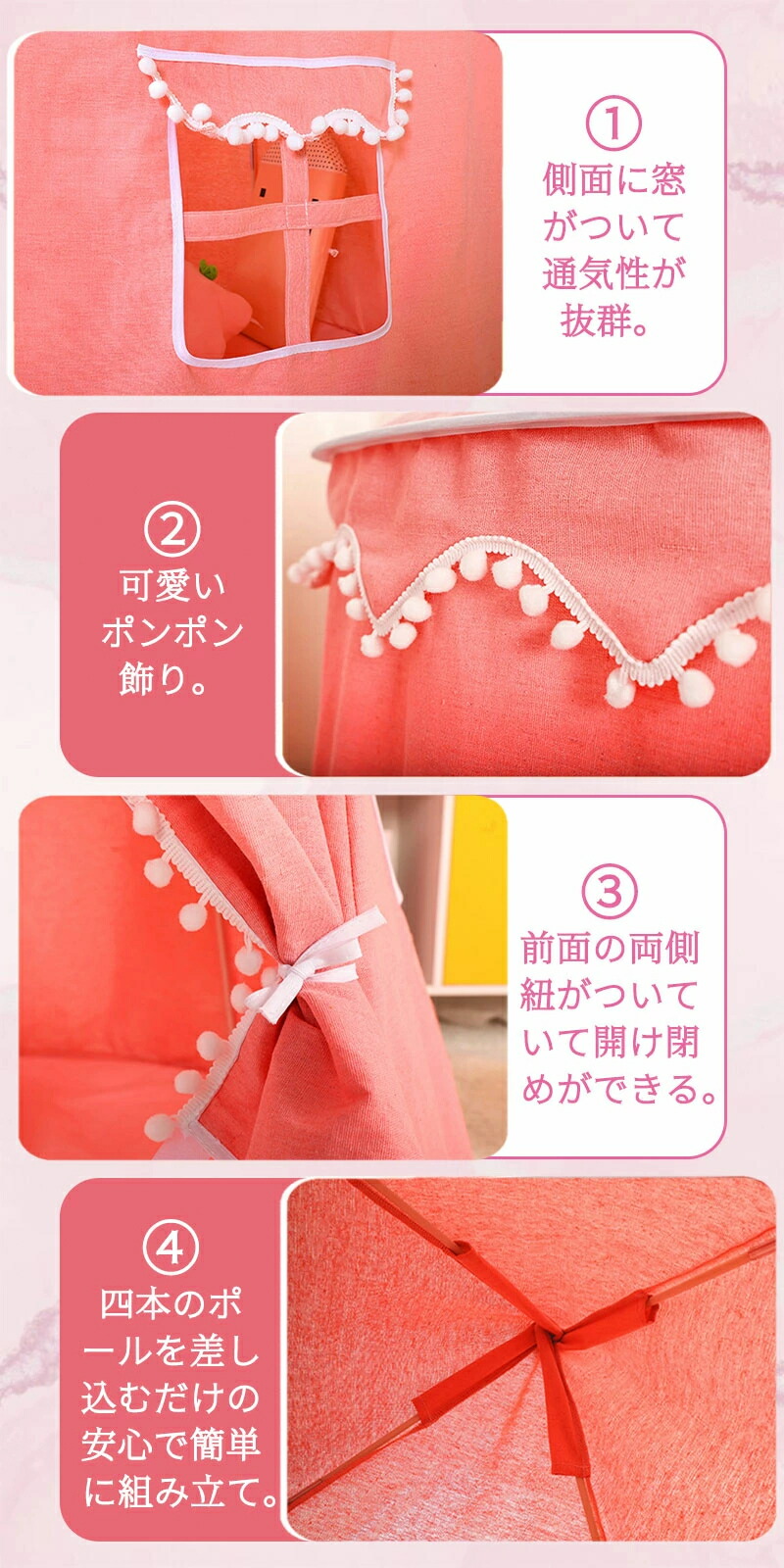 キッズテント 折りたたみ 子供 テント おもちゃ ゲーム 特集 ピンク パープル ブルー オフホワイト