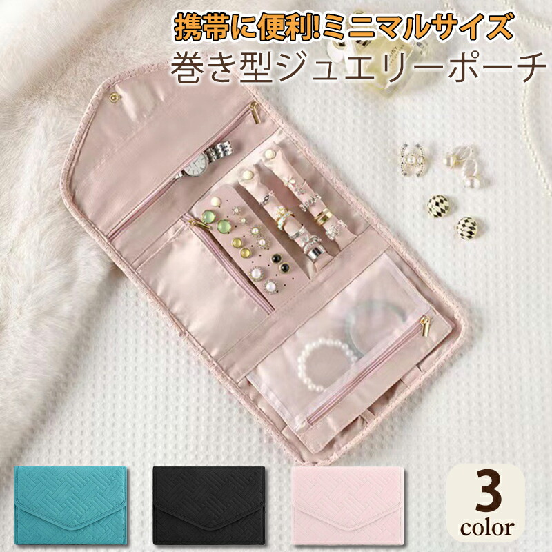 ジュエリーポーチ 折りたたみ式 ピアス ジュエリー アクセサリー 早い者勝ち ブラック ピンク シアン色