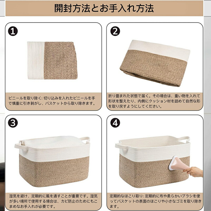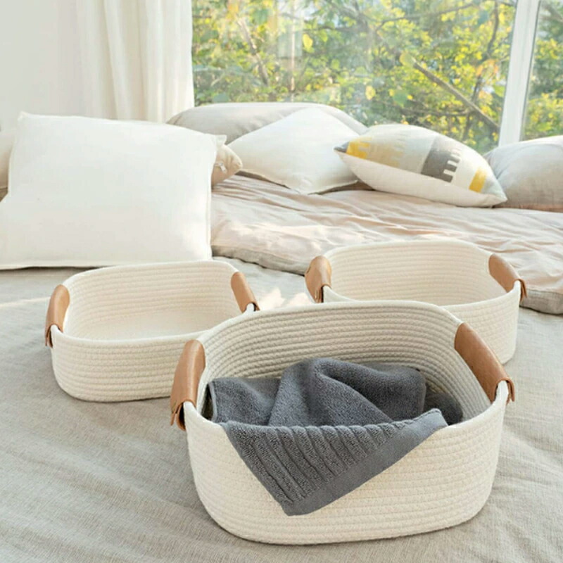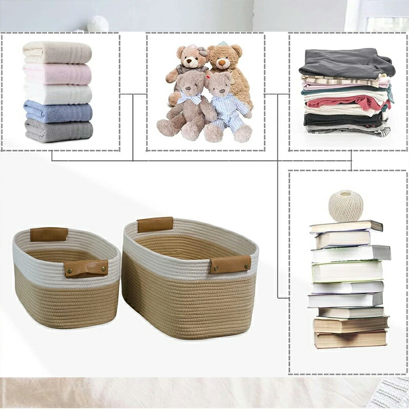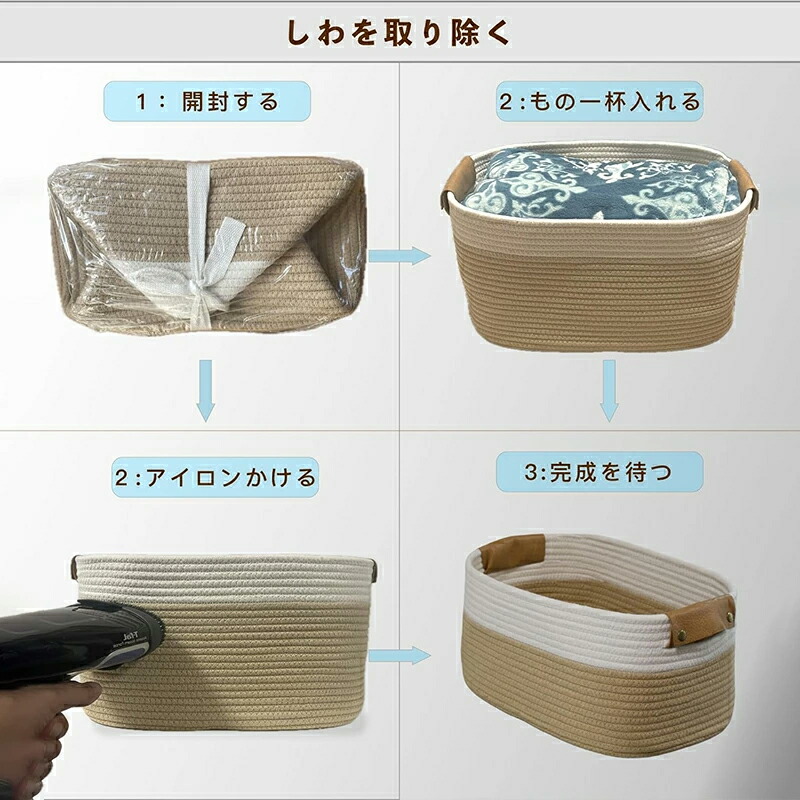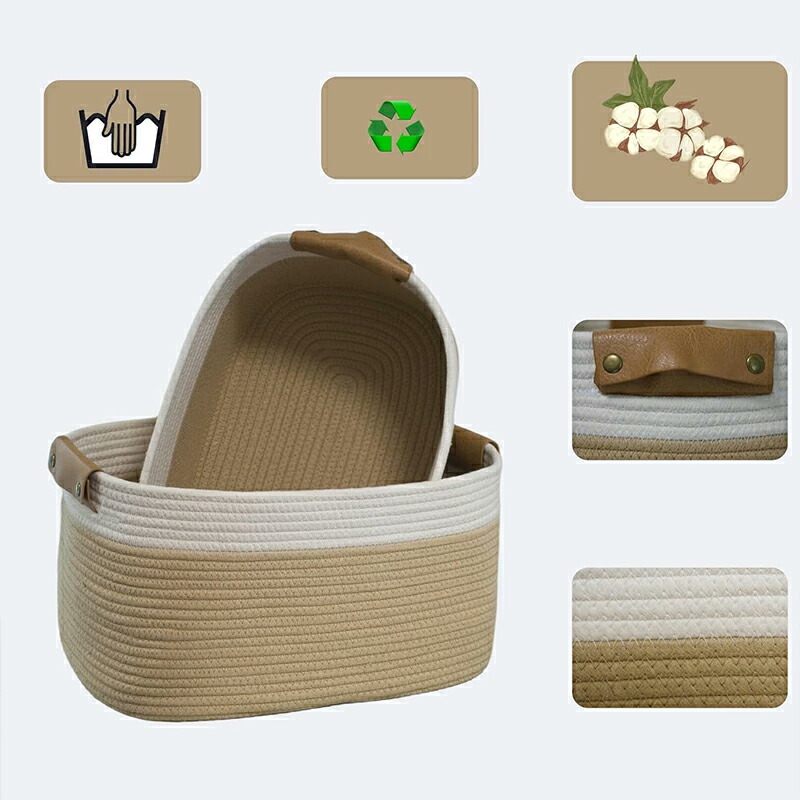 ロープバスケット ランドリーかご 大容 グレー カーキ ホワイト M (38*25*15cm) L (42*28*16cm)