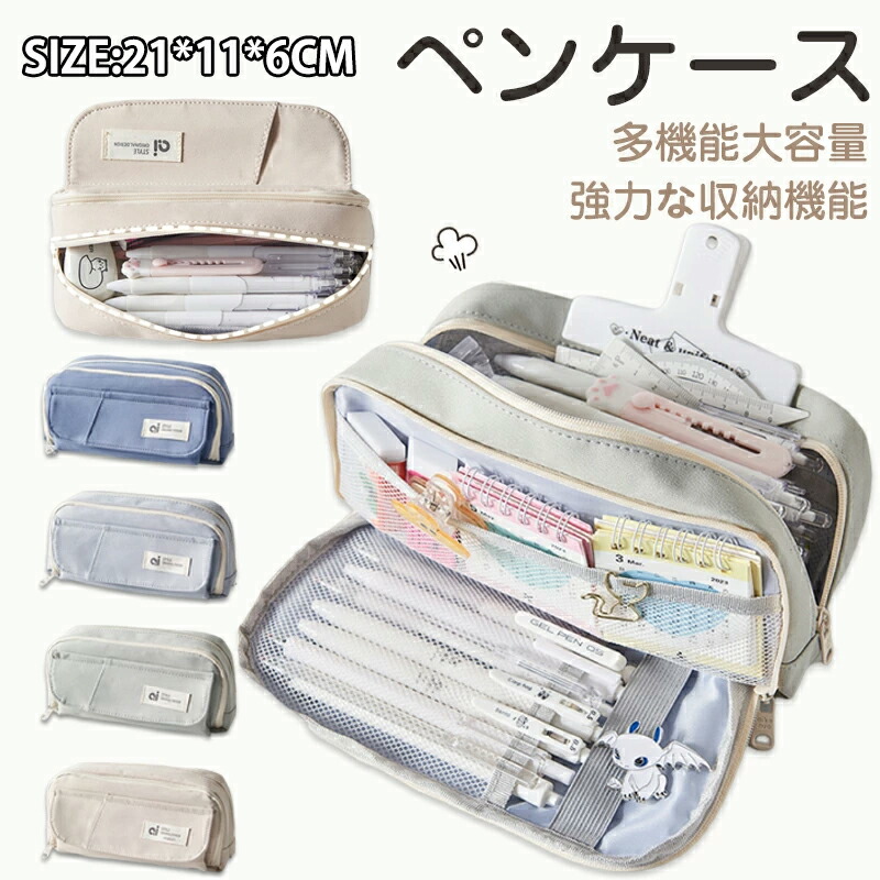 筆箱 ペンケース 大容量 韓国 おしゃ 日用品雑貨 文房具 手芸 人気 ブルー ライトパープル ベージュ ライトグレ一