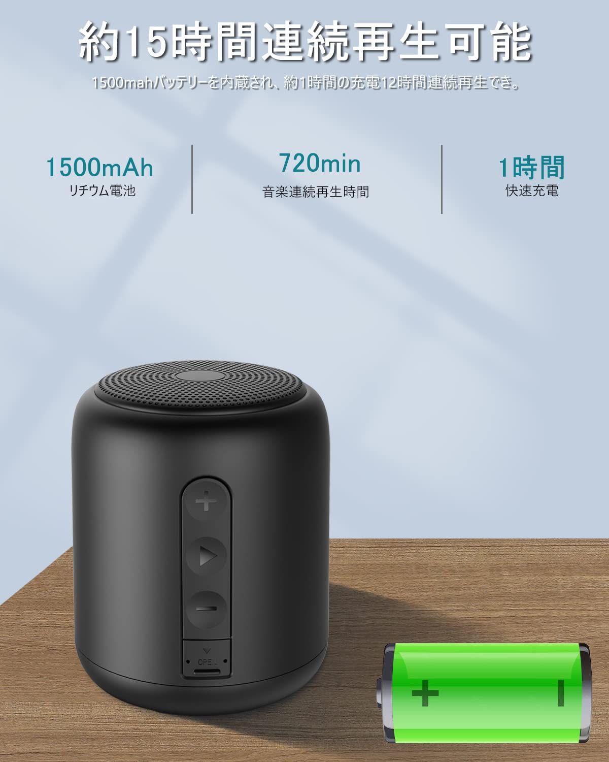 【15時間連続再生&TWS機能】大容量1500mAhバッテリーを搭載し、15時間連続再生が可能なスピーカー bluetoothです。 MicroSDカードとBluetoothの再生に対応し。 また、このスマートフォン用スピーカーは、Bluetooth接続で2台のスピーカーを同時にペアリングできる「TWS機能」に対応しています。 同時にペアリングすると、2台のスピーカーは自動的に左右のステレオとなり、圧倒的な存在感を放ちます。注意:Bluetoothで接続した場合、Bluetooth スピーカーでの再生とスマホのスピーカーからの音声を同時に再生することはできません。