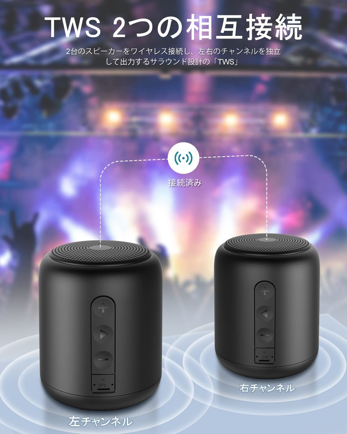Bluetooth スピーカー IPX4防水 | ワイヤレススピーカー 小型ポータブル DSP技術搭載 ブルートゥーススピーカー 内蔵マイク TWS機能 Bluetooth接続 15時間連続再生