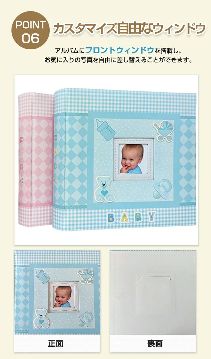商品名:ベビーアルバム 大容量 KG判 200枚 ポケット式 成長記録