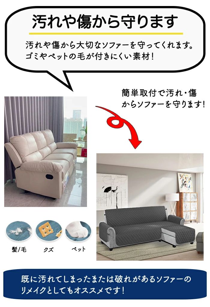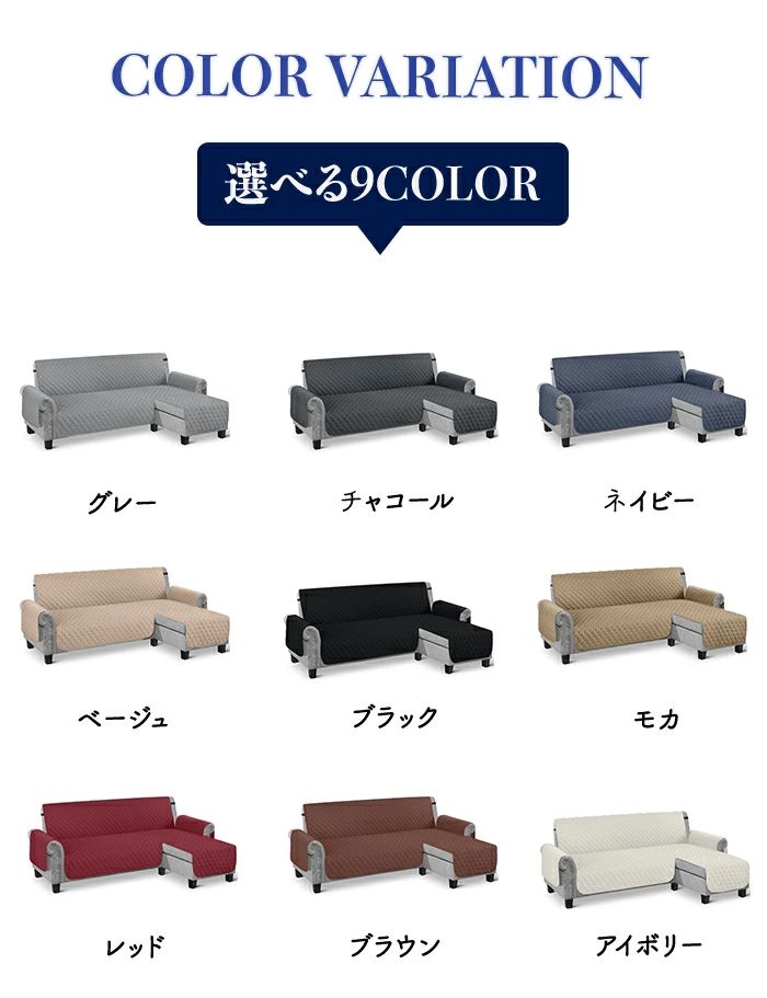 ソファーカバー L字型 防水 ペット グレー チャコール ネイビー ベージュ ブラック モカ レッド ブラウン アイボリー 左用 右用