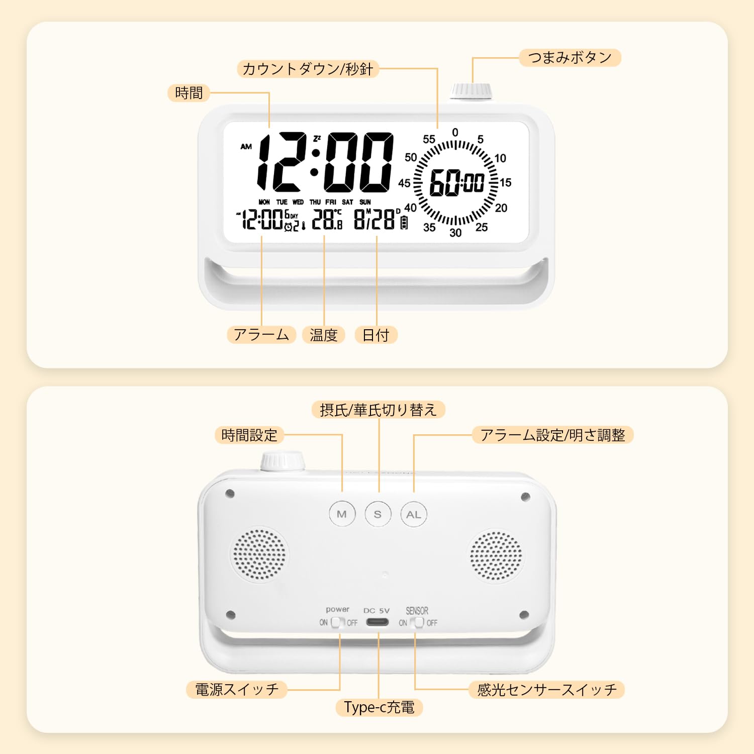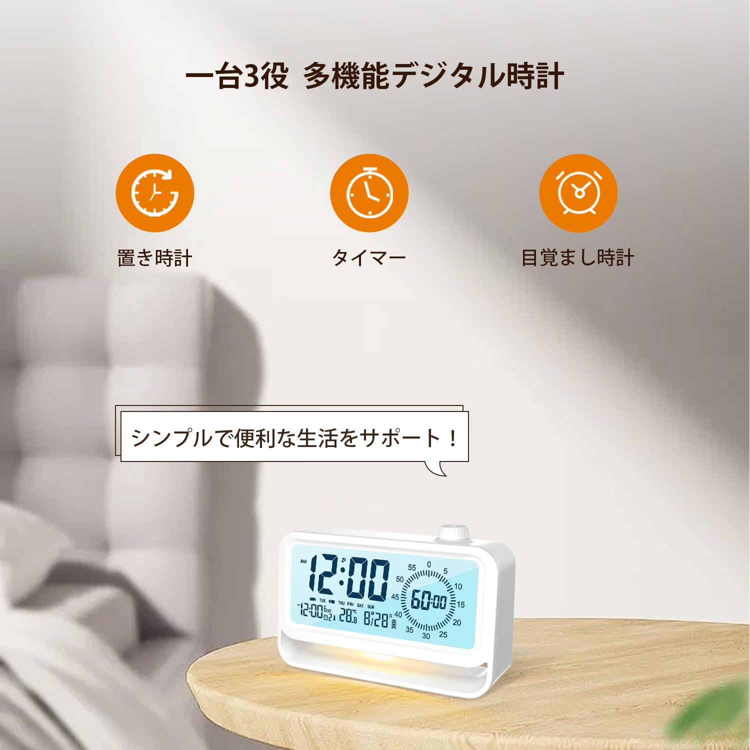 デジタル時計、置き時計、 目覚まし時計 スマートフォン タブレット 人気 ブラック ホワイト