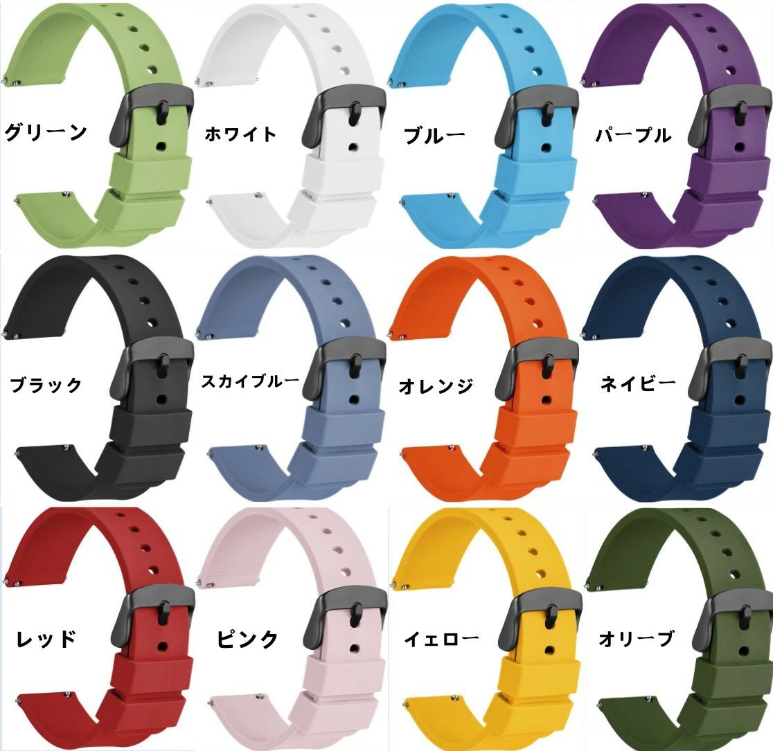 ラバーベルト シリコン14mm 16m スマートフォン タブレット 続々登場 ピンク ブラック ホワイト イェロー オリーブ オレンジ ブルー レッド グレー 14mm 16mm 18mm 20mm 22mm 24mm