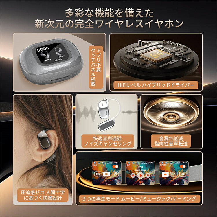 イヤホン bluetooth5.4 完 ホワイト グレー