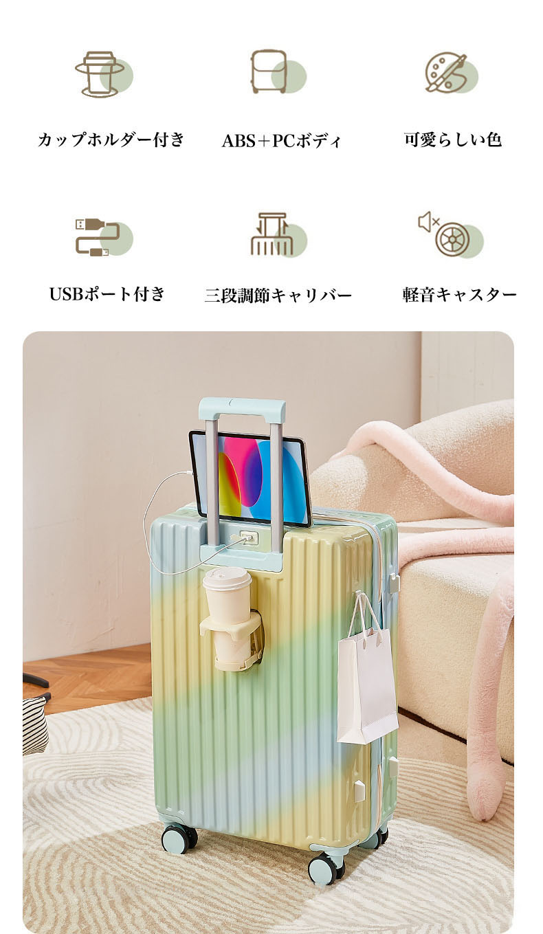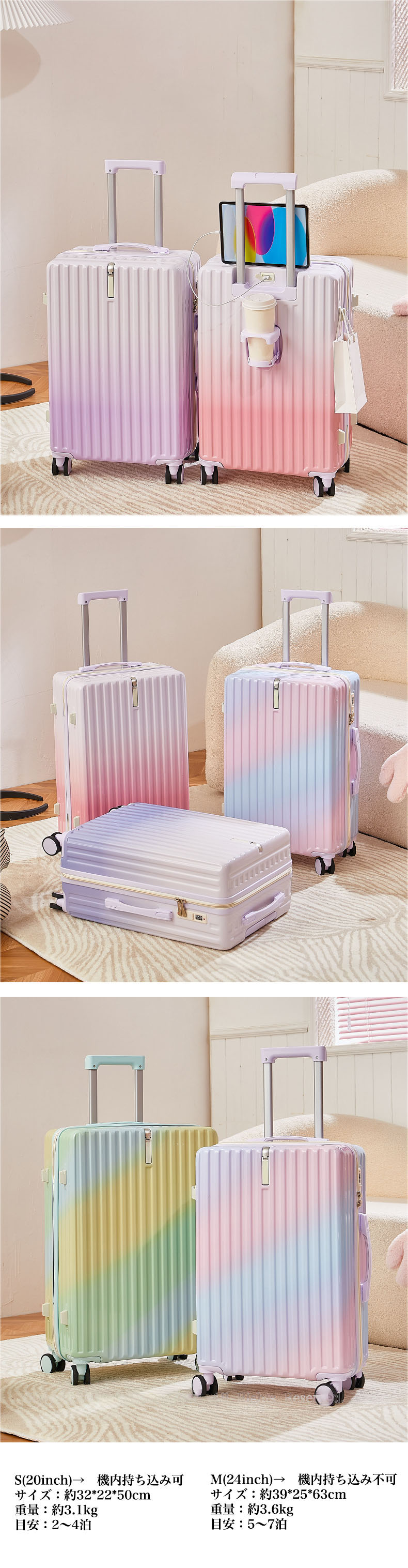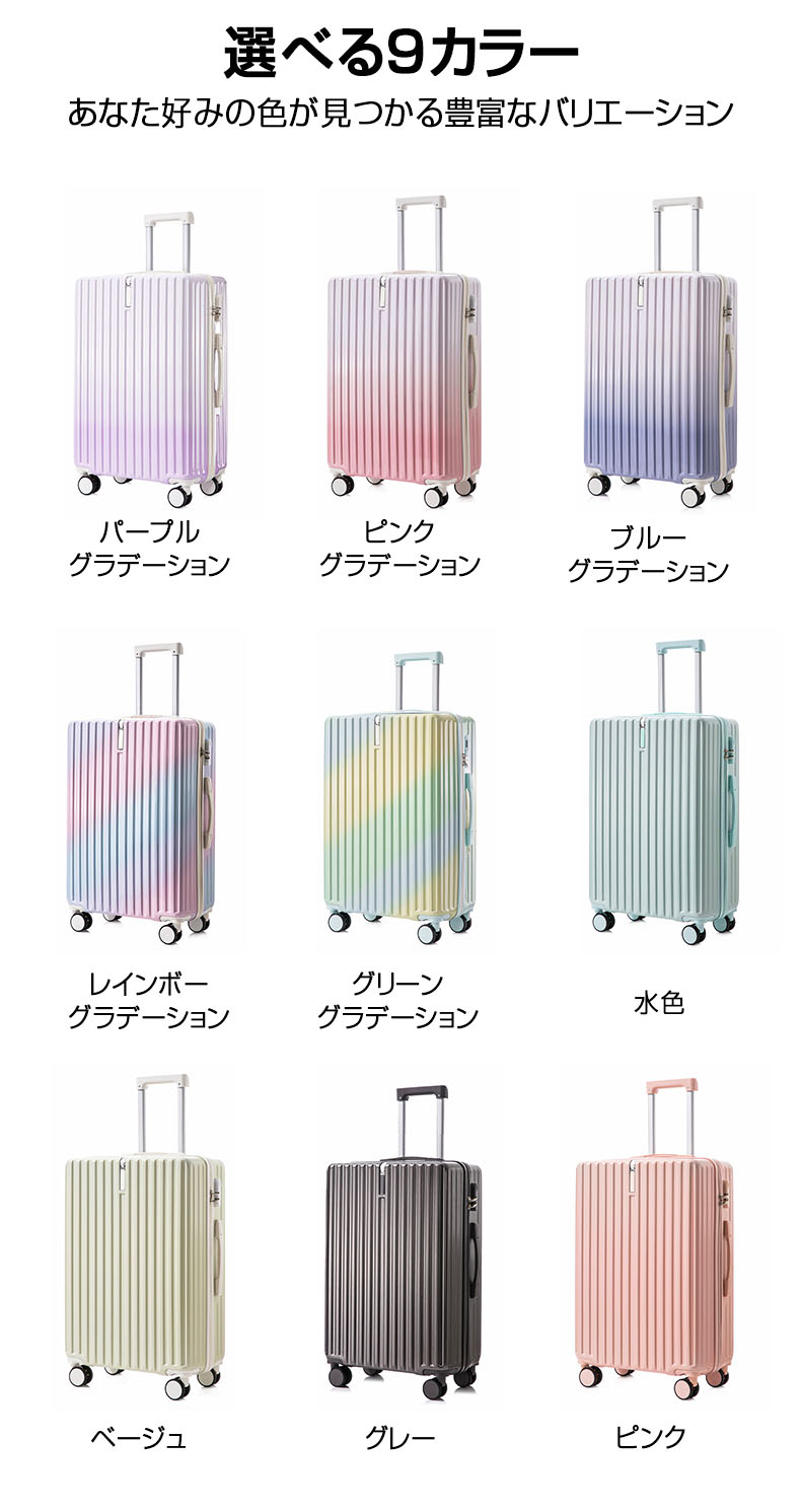 スーツケース 機内持ち込み S SS バッグ 小物 ブランド雑貨 通販 パープルグラデーション ピンクグラデーション ブルーグラデーション レインボーグラデーション グリーングラデーション 水色 ベージュ グレー ピンク SS(20inch)機内持ちこみ可 S(22inch)機内持ちこみ不可 M(24inch)機内持ちこみ不可