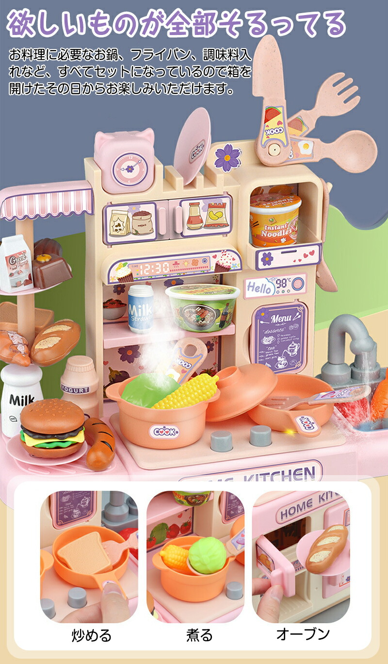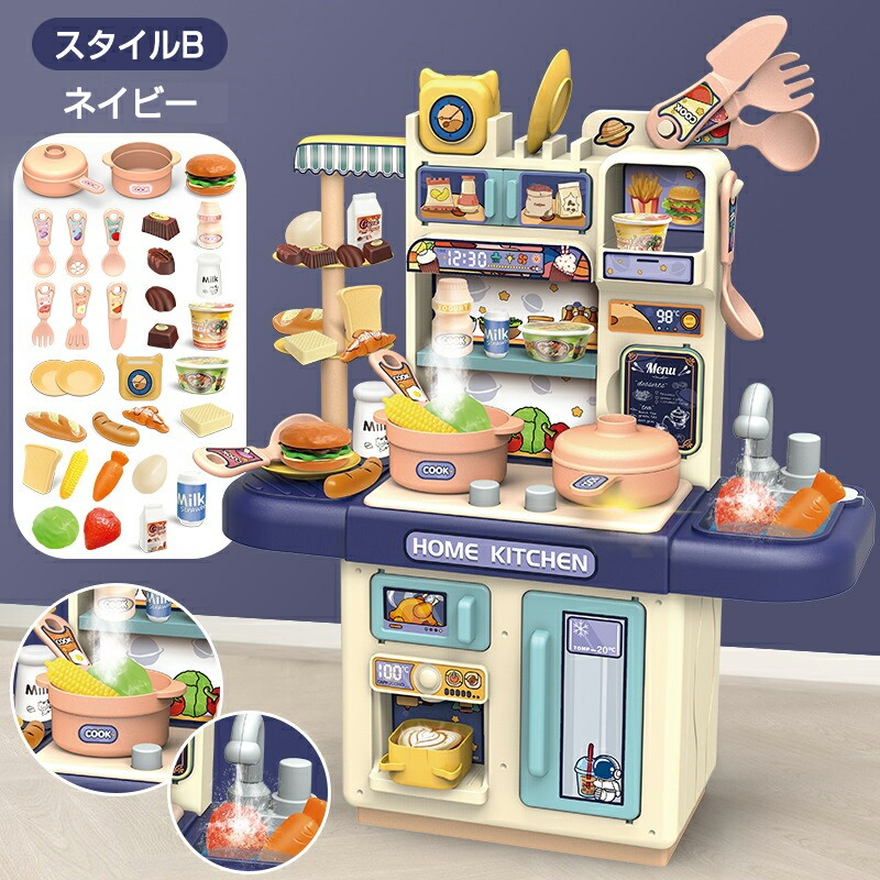 ままごと キッチン ままごとセット 食 おもちゃ ままごと ごっこ遊びトイ 食事 新作 ピンク ペールピンク ネイビー スタイルA スタイルB