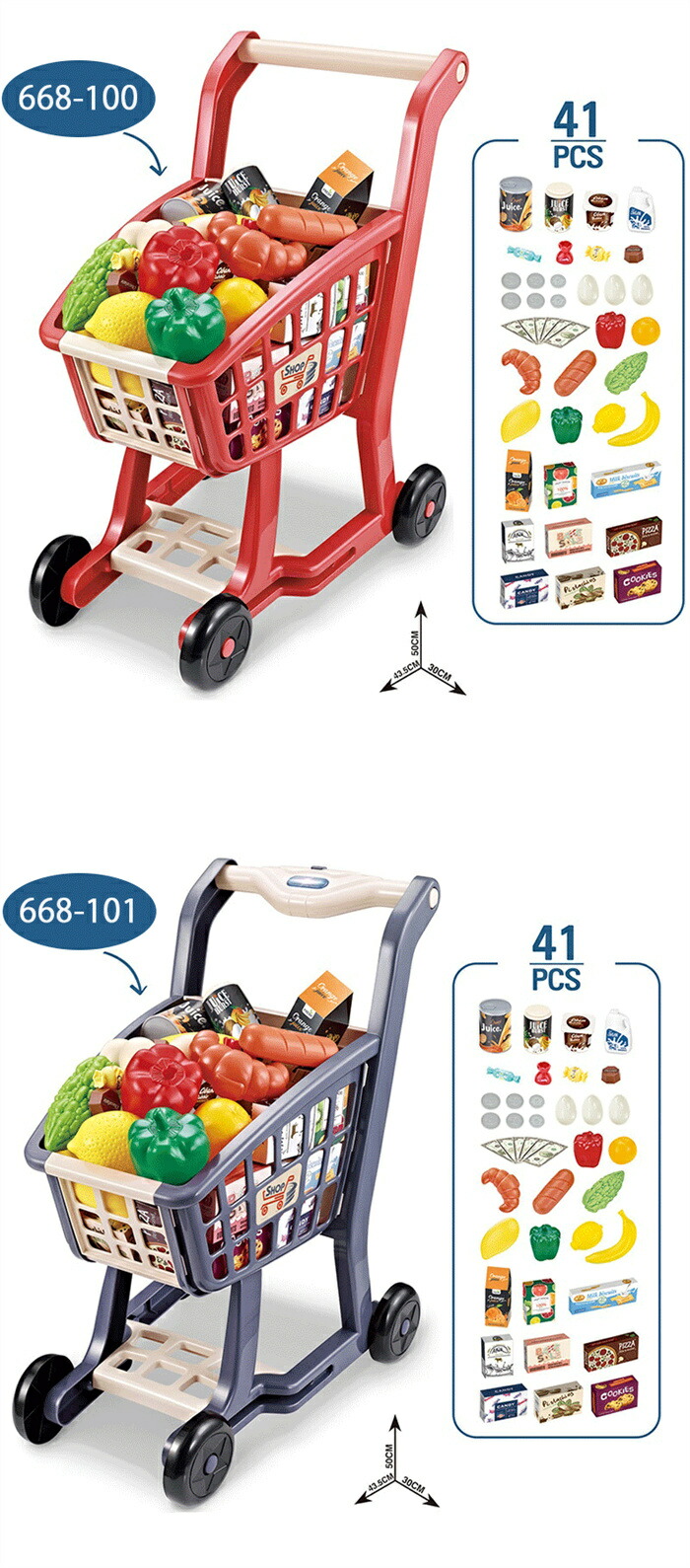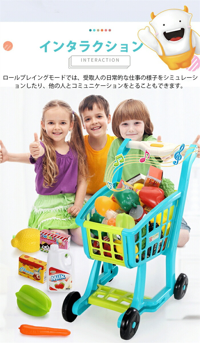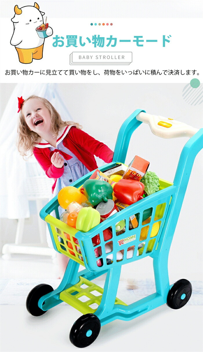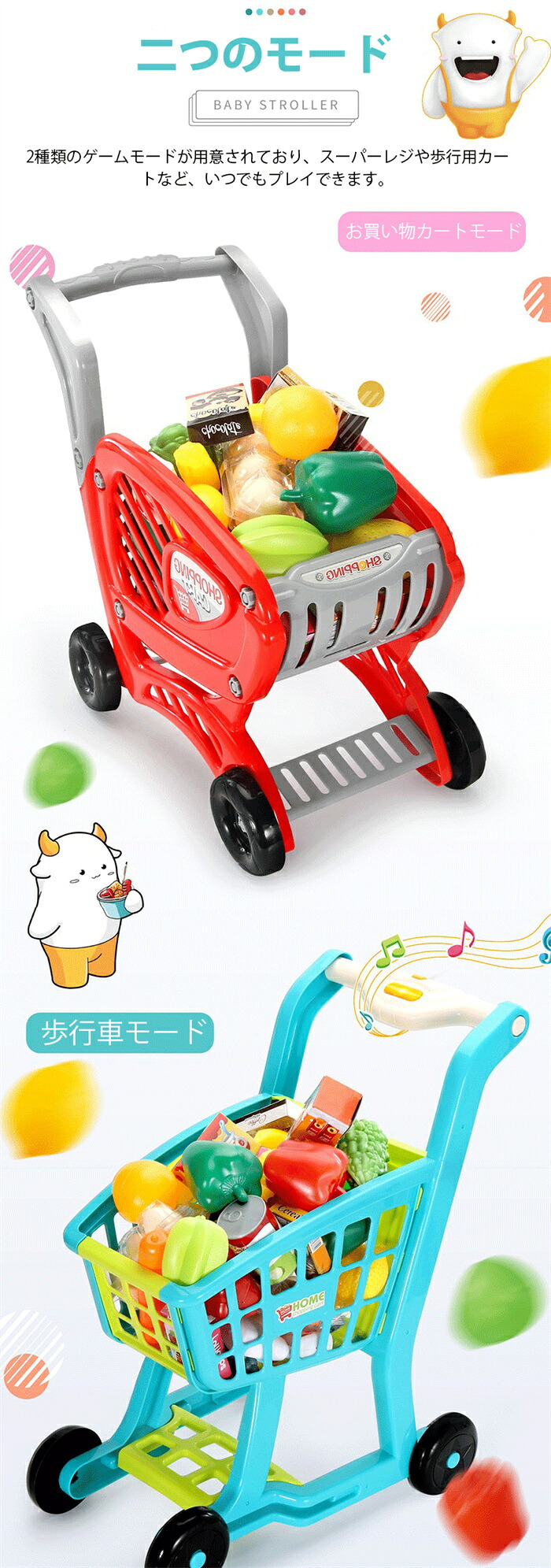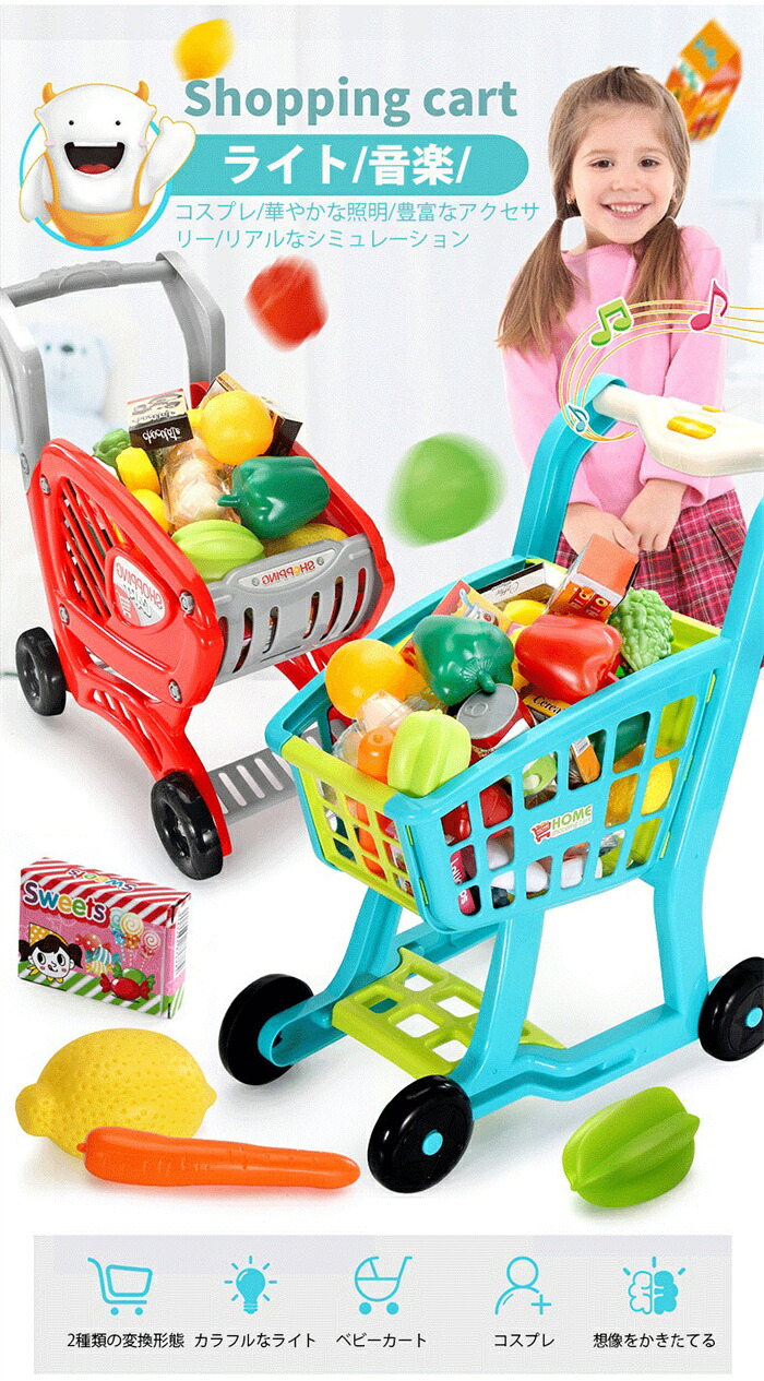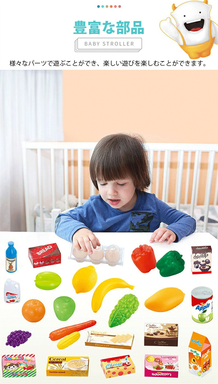 限定41 42点セット キッズおままごとおもちゃ 知育玩具 誕 ミニショッピングカートおもちゃスーパーマーケット手押し車デラックス押しやすいショッピングトロリーおもちゃ対象年齢3歳以上赤ちゃん早期教育