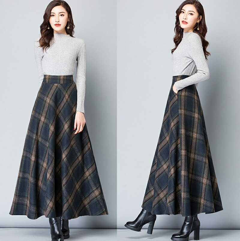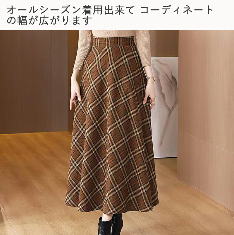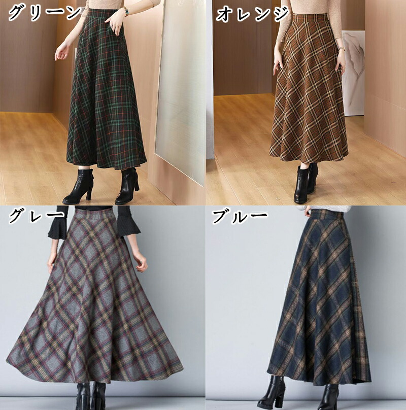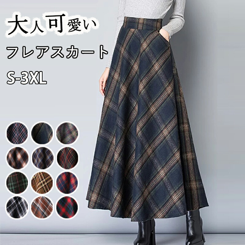 チェックスカート ロングスカート フレ ボトムス スカート 通販 レッド1 レッド2 レッド3 ブラック コーヒー アーミーグリーン カーキ パープル グリーン オレンジ グレー ブルー S M L XL 2XL 3XL