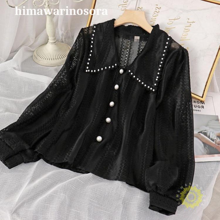 シャツブラウス レースブラウス 襟付き トップス Tシャツ カットソー 通販 ブラック ホワイト アイボリー M/L XL/2XL 3XL