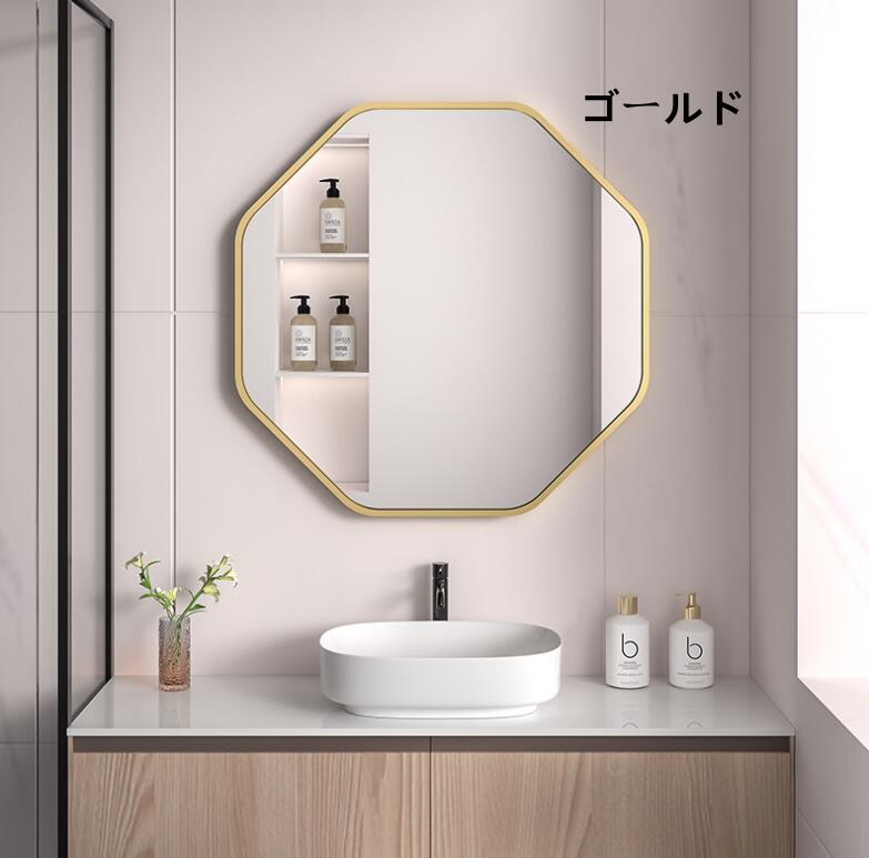 ウォールミラー 鏡 八角形 壁掛けミラ ブラック ホワイト ゴールド 40x40CM 50x50CM 60x60CM 70x70CM