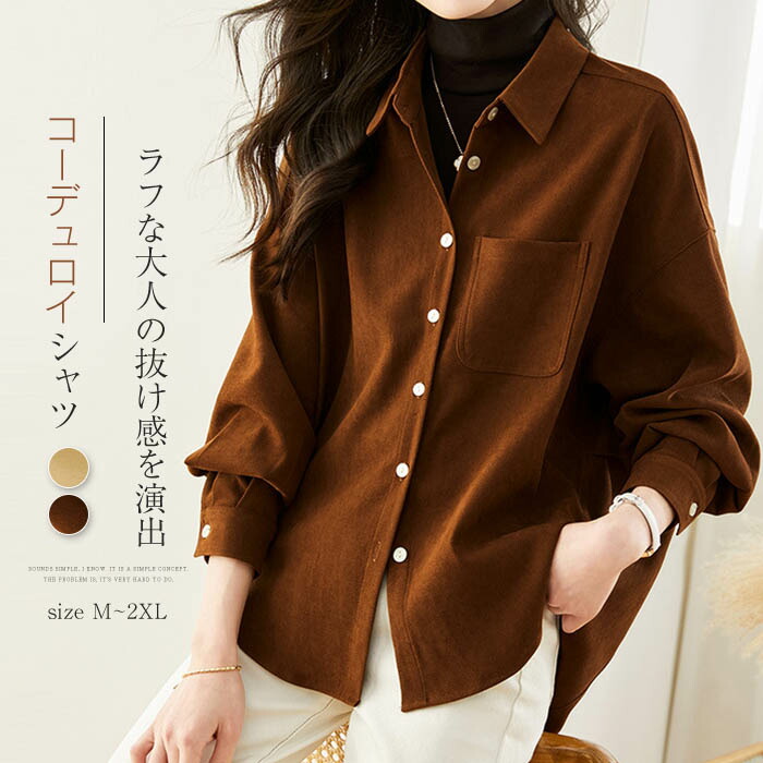 コーデュロイ シャツ レディース 長袖 トップス シャツ ブラウス 超目玉商品 黄色ラクダ コーヒー M L XL XXL