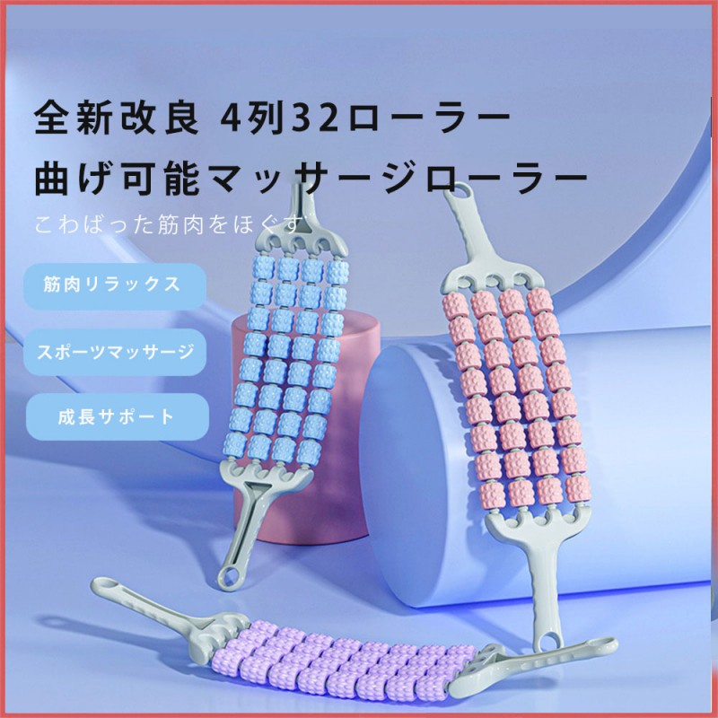弯曲可能 4列マッサージ 全身マッサー ブルー ピンク パープル グリーン