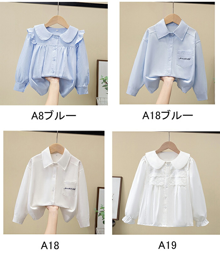 ブラウス 女の子 長袖 襟付き 長袖ブ キッズ トップス シャツ ブラウス 続々入荷中 A1+安全ピン A2 A5+リポン A6 A7+リポン A8 A9 A25 A26 A27+リポン A18+リポン A18ブルー+リポン A8ブルー A18ブルー A18 A19 A36 A37 A38+ネクタイ A39+ネクタイ A40+ネクタイ 110cm 120cm 130cm 140cm 150cm