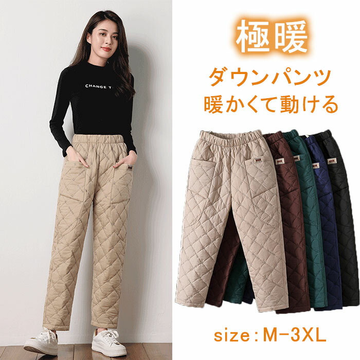 暖かい パンツ ダウンパンツ レディー レディースファッション 続々登場 ブラック ネイビー コーヒー カーキ グリーン M L XL 2XL 3XL