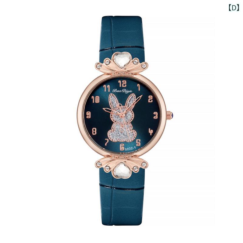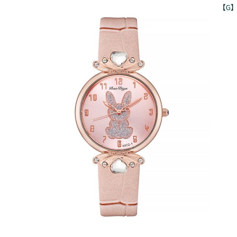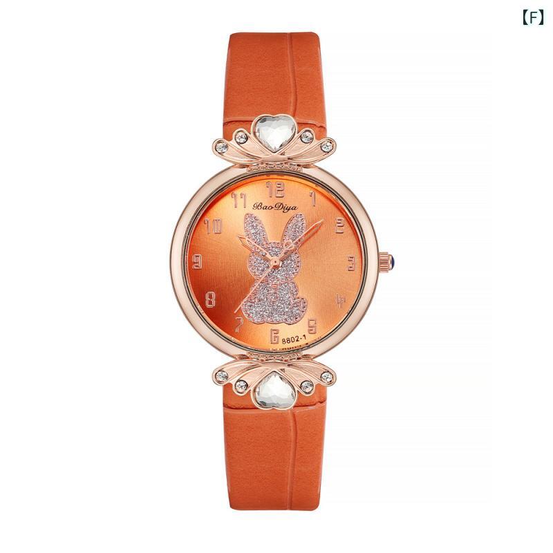 腕時計 レディース ラビットモチーフ A:白 B:赤 C:緑 D:青 E:黒 F:オレンジ G:ピンク H:茶