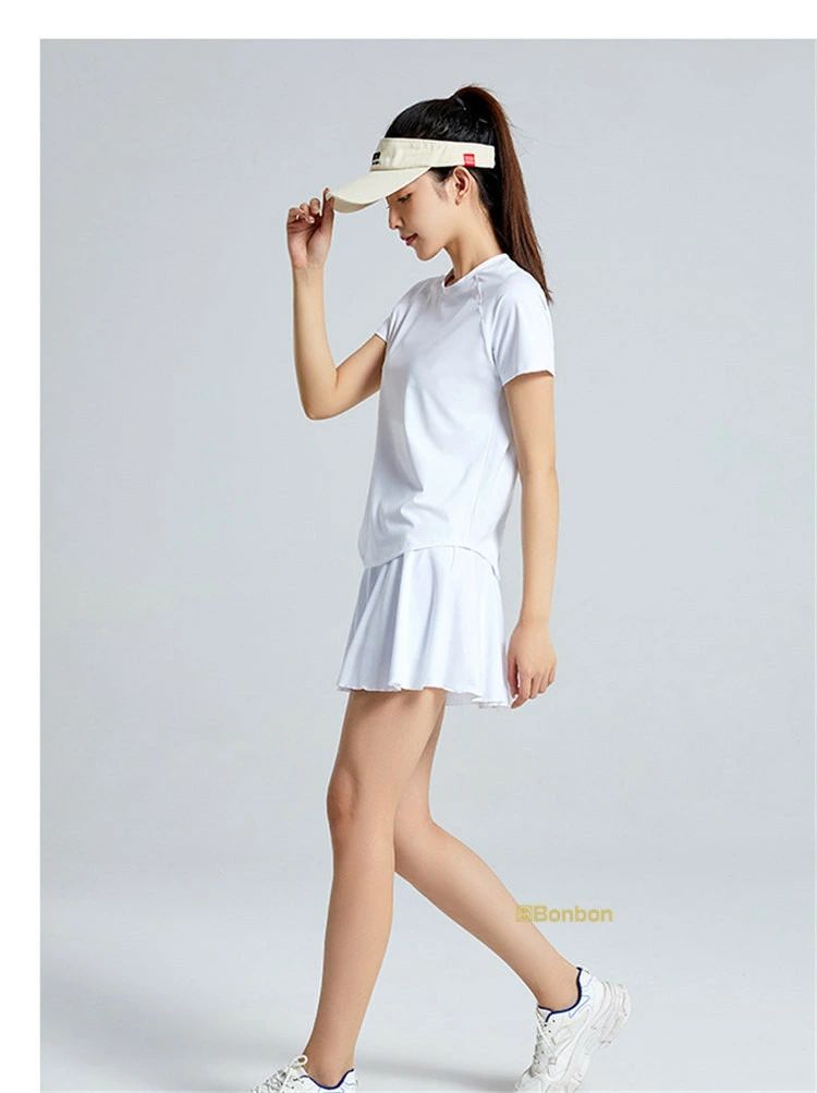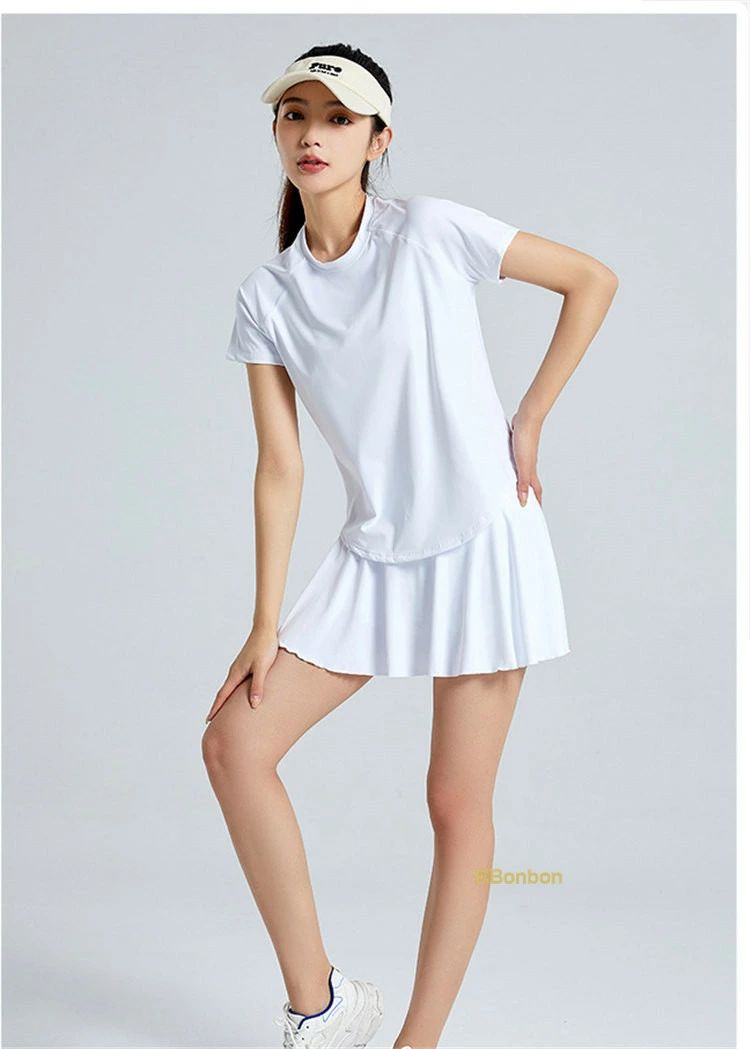 ゴルフウェア 上下セット レディース テニスウェア スポーツウェア 半袖シャツ+スカート ヨガ トレーニング 運動着 吸汗 速乾 インナーパンツ付き 体操服