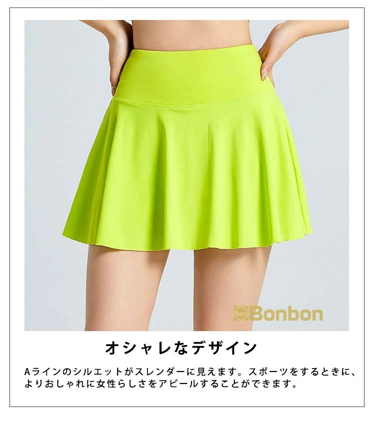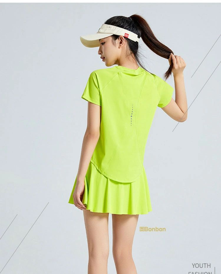 この夏に大活躍のテニスウェア上下セットが登場!テニスはもちろん、ゴルフやランニング、ウォーキング、フィットネス、ヨガなど、様々なスポーツシーンで活躍します。半袖Tシャツとスカートの組み合わせは、動きやすさとスタイルを兼ね備え、インナーパンツ付きで安心して運動に集中できます。