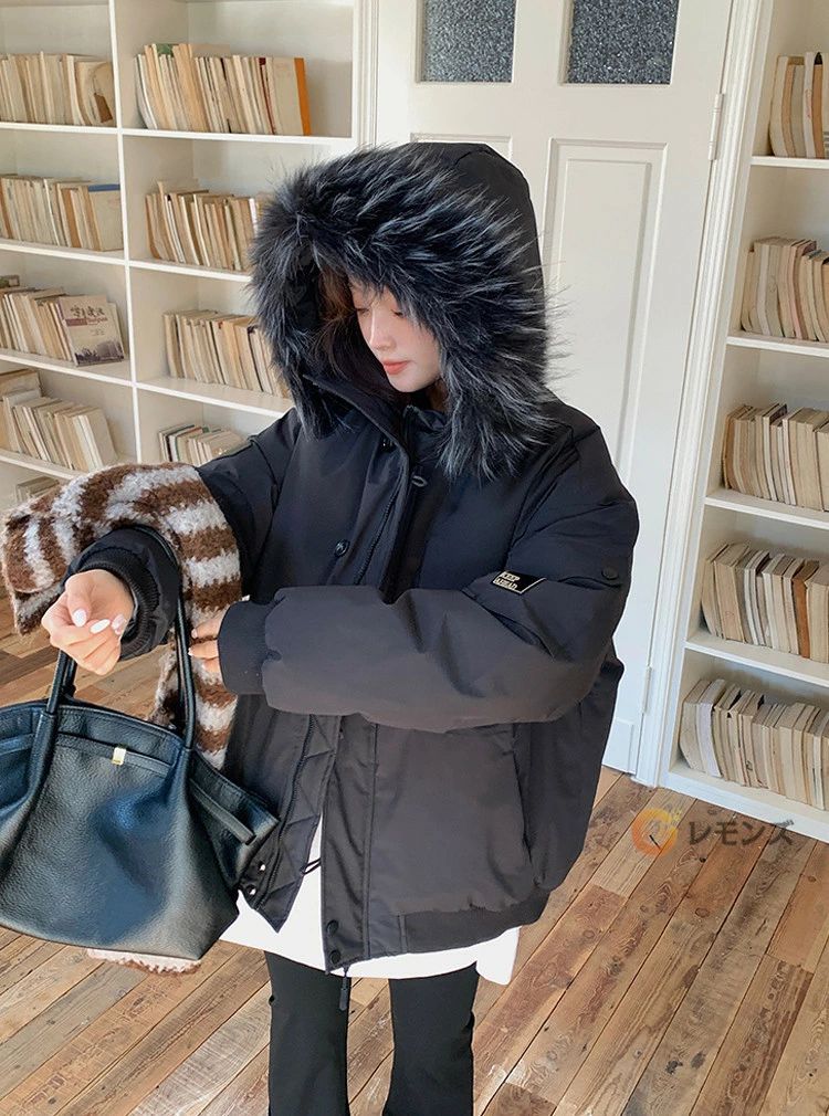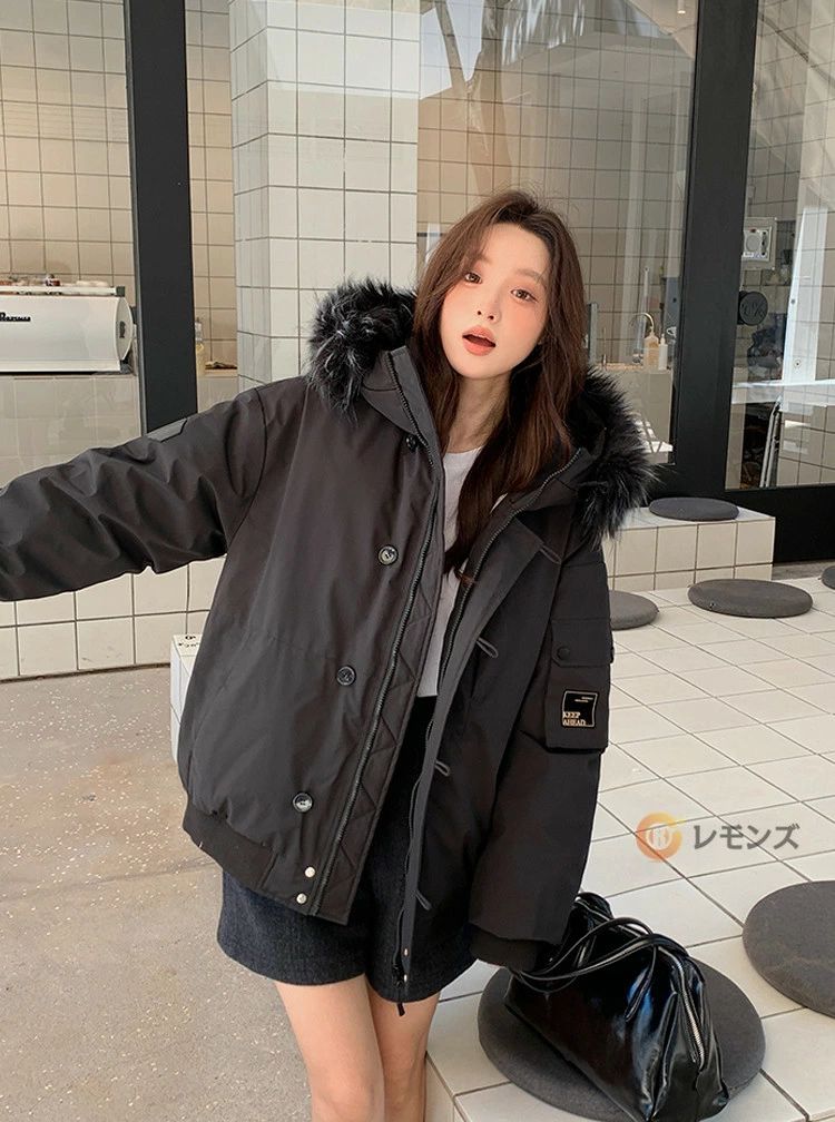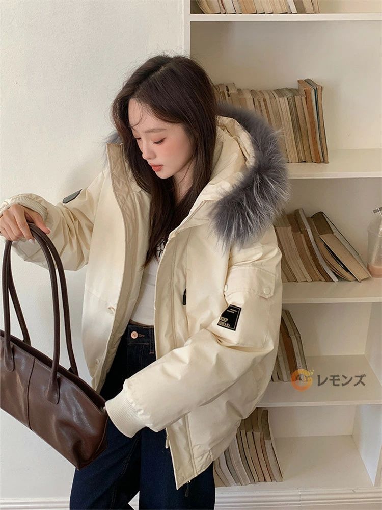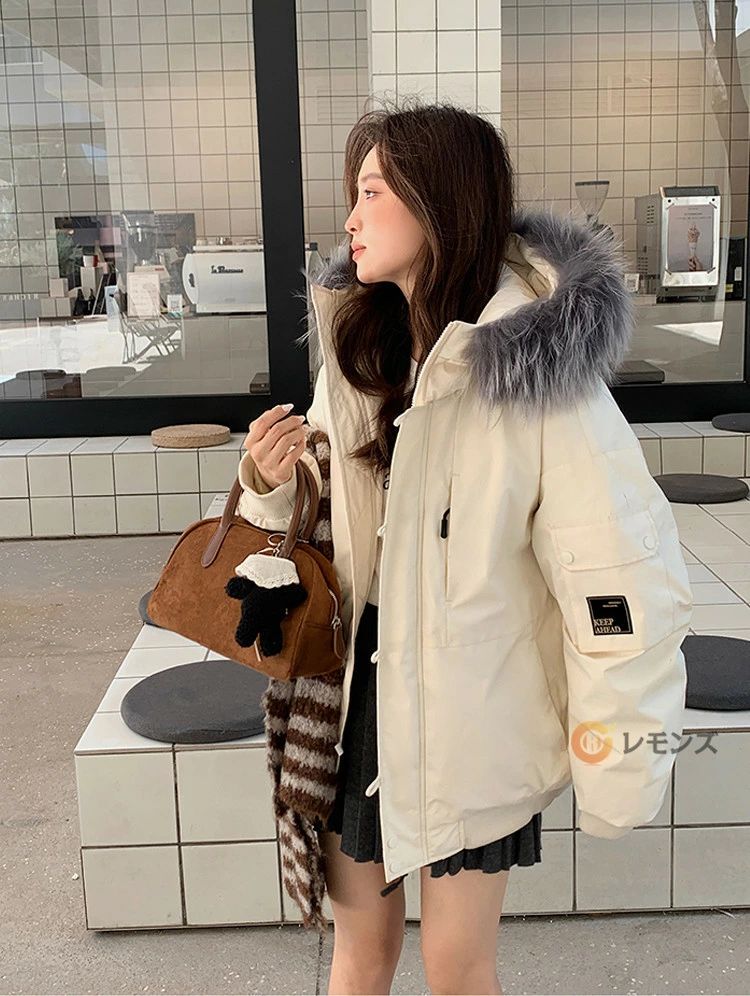 ファーフード付き アウター 中綿ジャケ レディースファッション 豊富 アイボリー 黒 コーヒー S M L XL